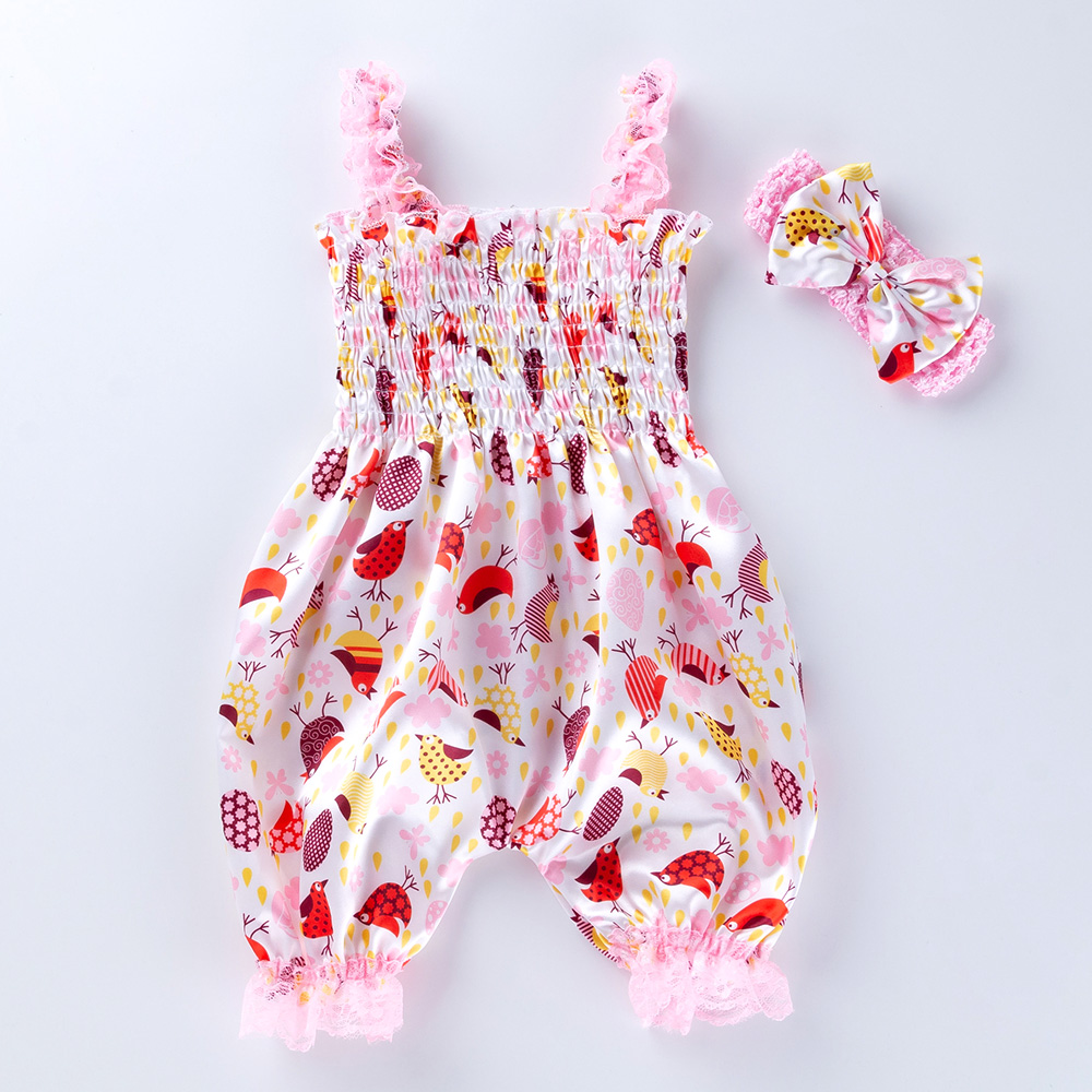 Girls Summer Backless Romper Baby Lace-up Bloomer Jumpsuit Infant Easter Print Polyester Newborn Pography Costumes Props