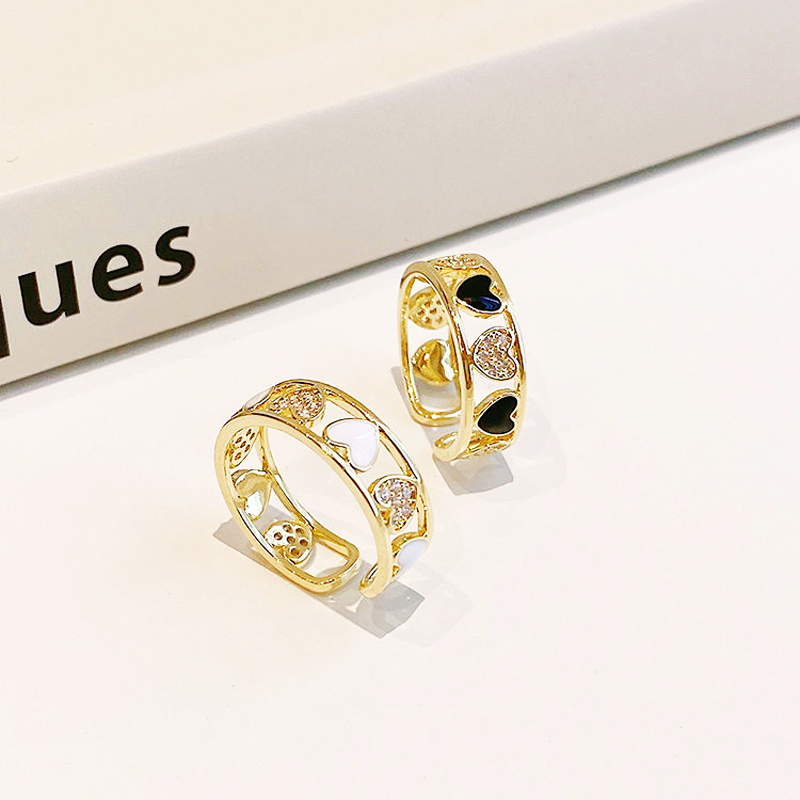 Products : Korean Exquisite Fashion Hollow Out Heart Ring Zircon Shell Adjustable Lady Rings Romantic Elegant Delicate Female Jewelry