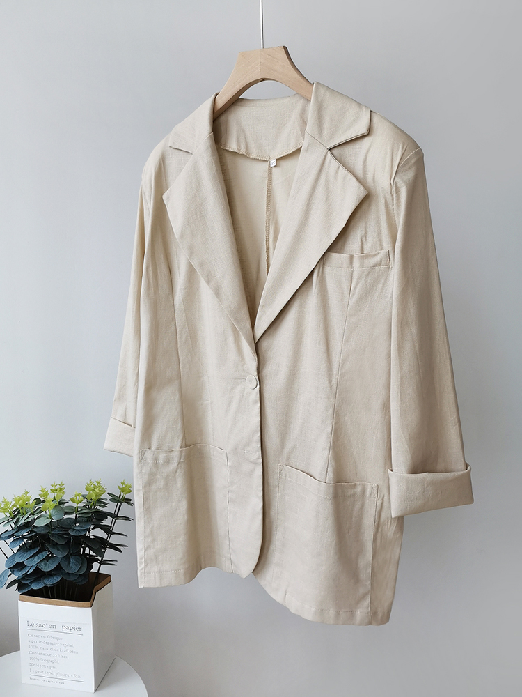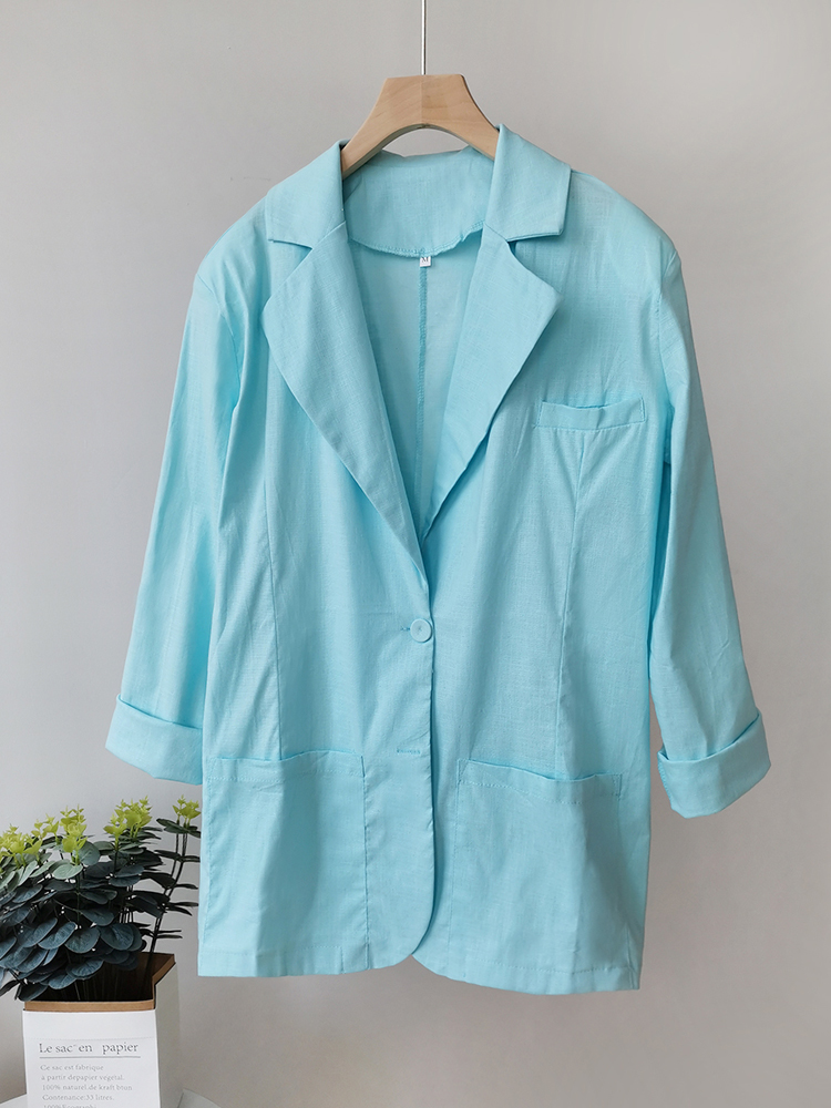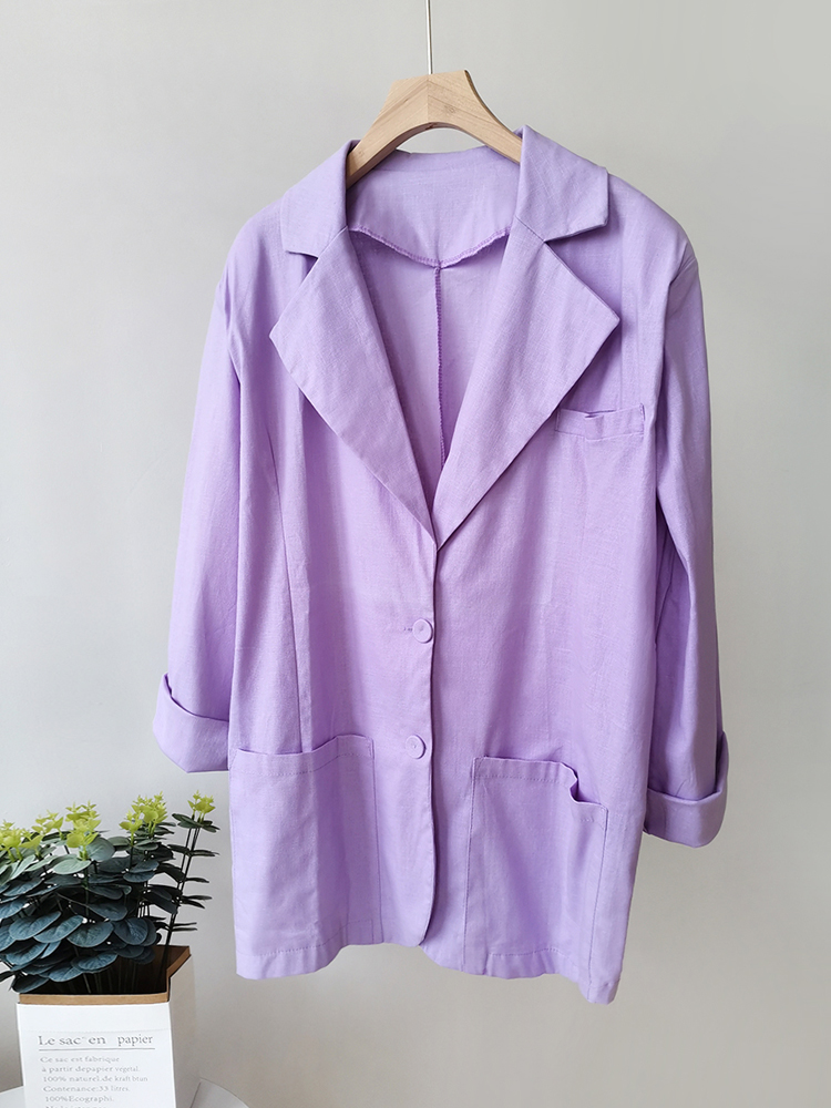 Green Cotton Linen Women's Oversize Jacket Candy Colors Long Jackets Suits Blazer for Women Elegant Stylish Office Tops Coat
