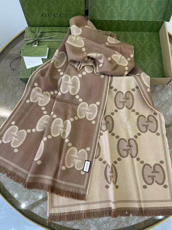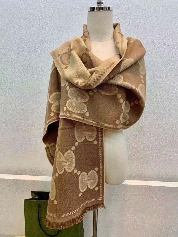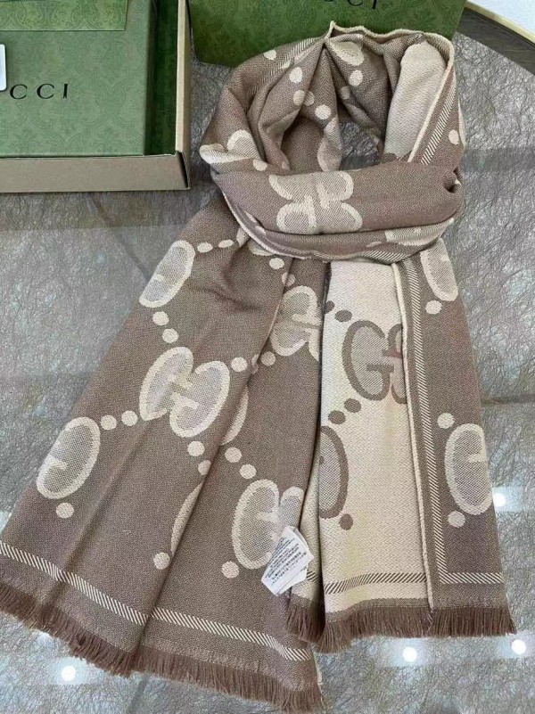 Gucci Beige GG Wool Jacquard Scarf