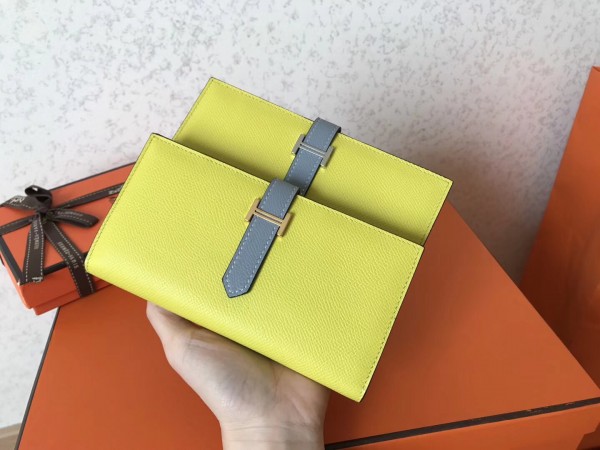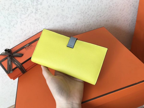 Hermes Bi-Color Epsom Bearn Wallet Soufre/Blue Lin