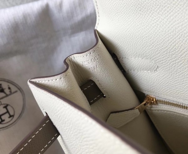 Hermes Bi-color Kelly 32cm Epsom Bag White/Taupe GHW