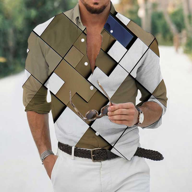 High Spring Autumn Men's Shirts Geometric 3D Printing Long Sleeve Men's Casual T-Shirt Tops Streetwear