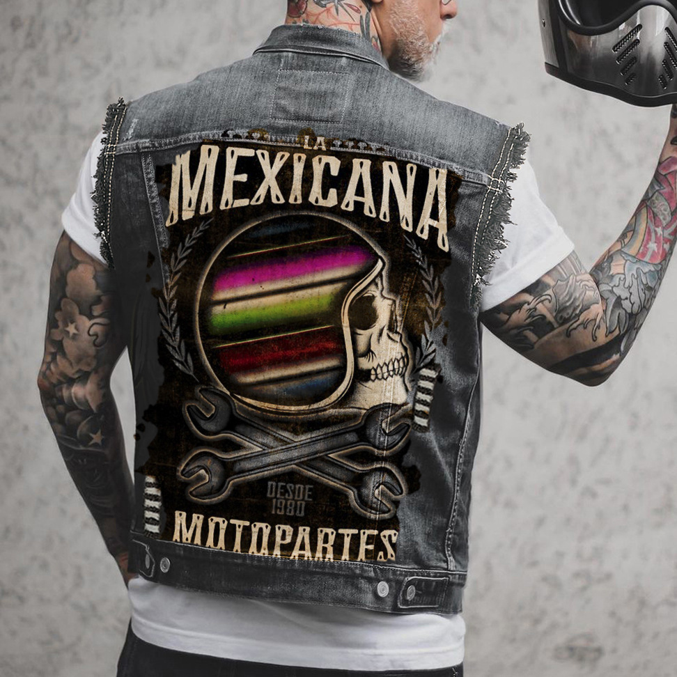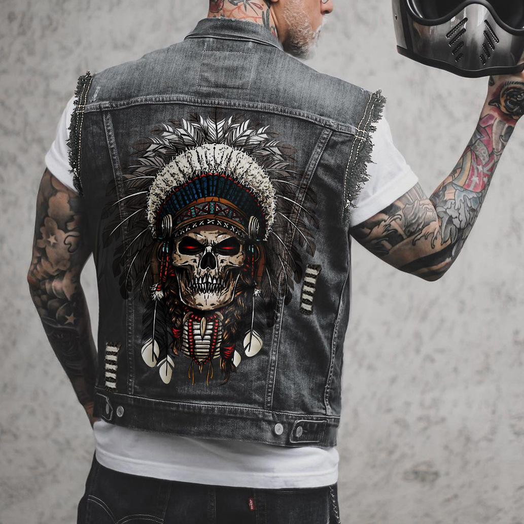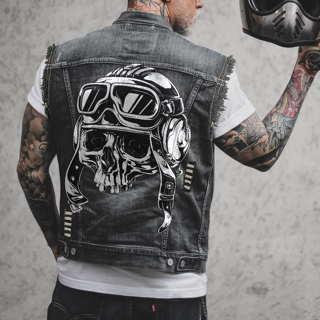 Hip Hop Punk Top Waistcoat Hole Ripped Cotton Men Denim Vests Mens Vest locomotive Sleevless Jean Jacket Skull Motorcycle Biker