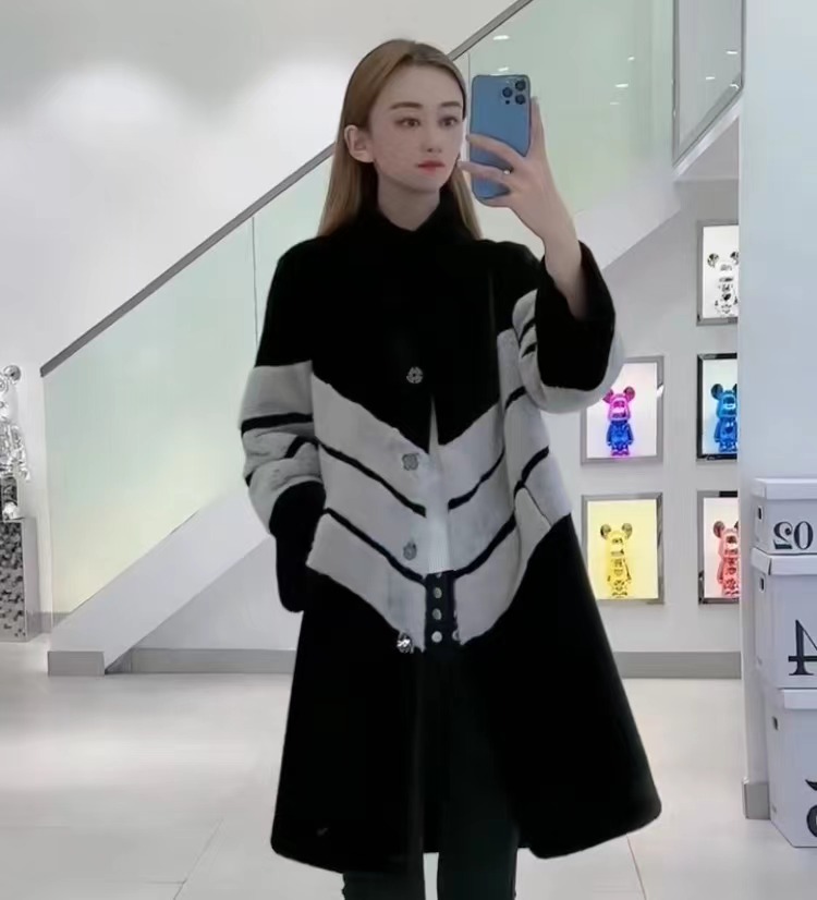 Imitation Fur Women's Coat Long Slim Fitting Contrast Stitching High Imitation Mink Stand Collar Coat Aging Comfort