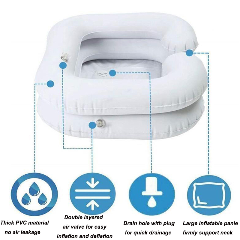 Shampoo Tray Hair Washing Basin for The Disabled Inflatable Shampoo Basin Tub Portable With Drain Tube PVC