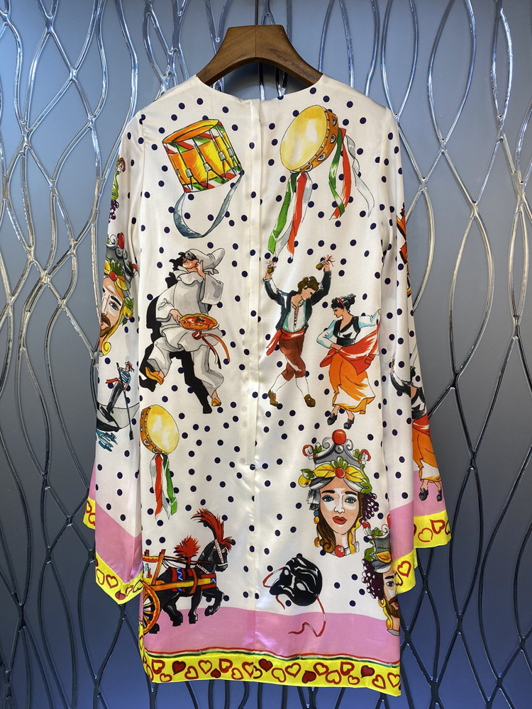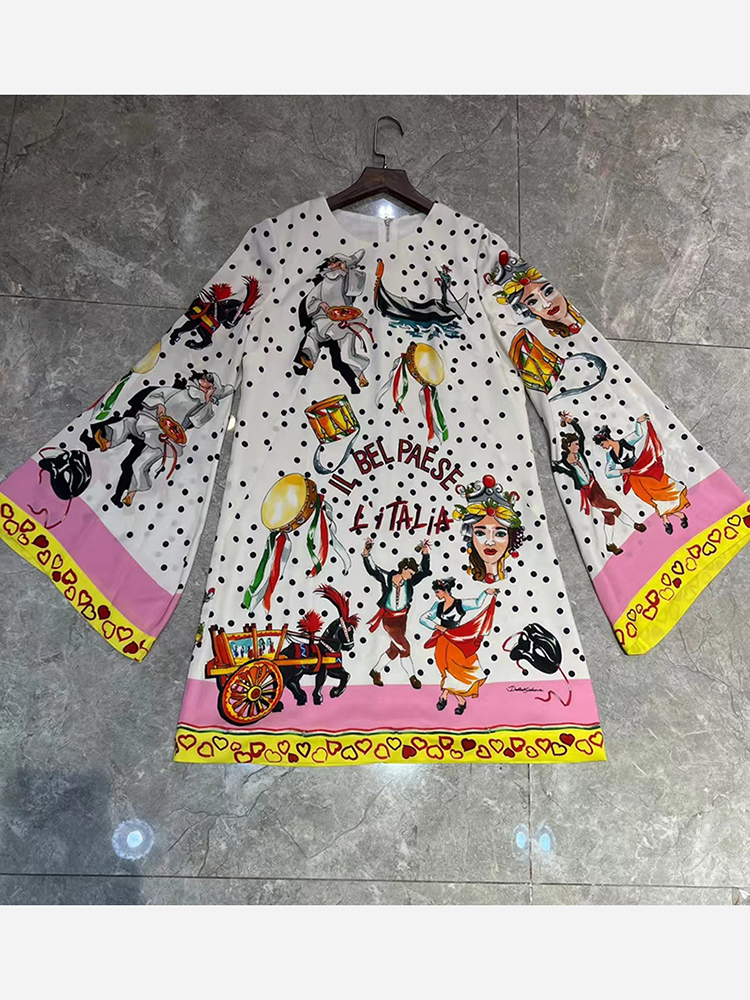 JUNLINNA SWeets Women Dress Summer Autumn High Street Printed Vestids A Crew Neck Long Sleeve Loose Younger Wear