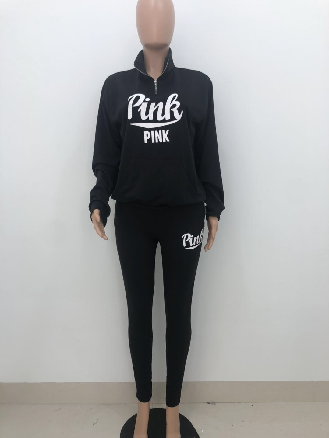 Joggers Gym Sports Workout Sweatsuit 2-Piece Sweat Sets Women Sweat Outfits Autumn Pink Printed Tracksuit Two Piece Joggeing Set
