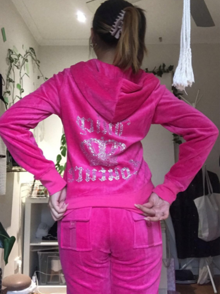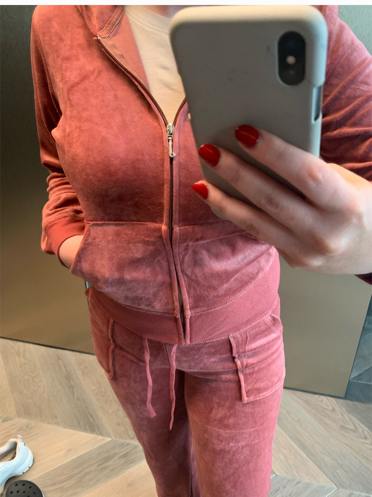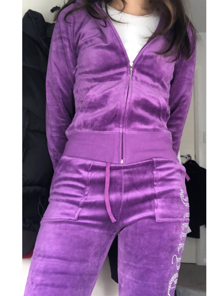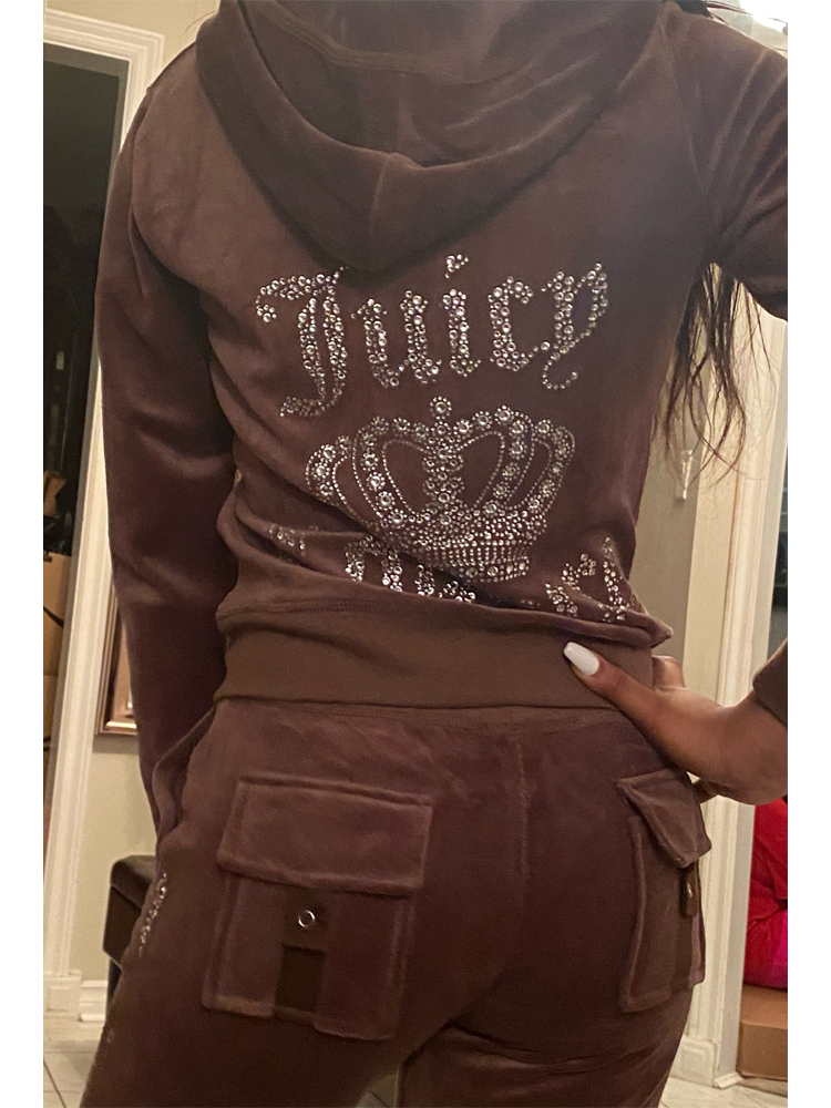 Juicy Tracksuit Women Juicy Apple Y2k Velvet Top And Pants Velour Sewing Suit Two-piece Set Pants Female Jogging Rhinestone Met
