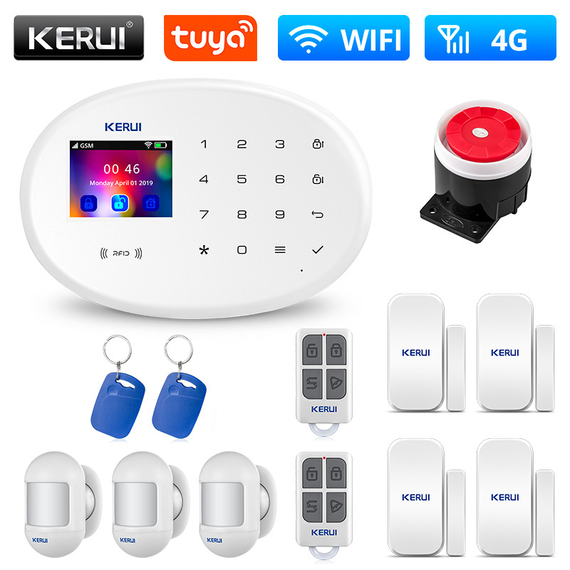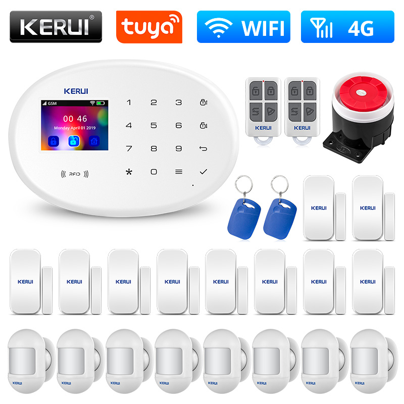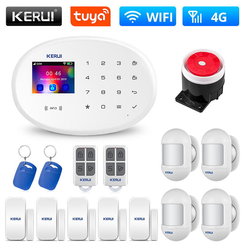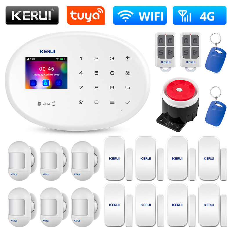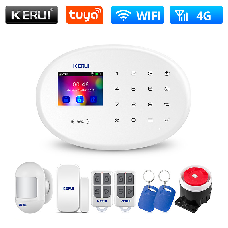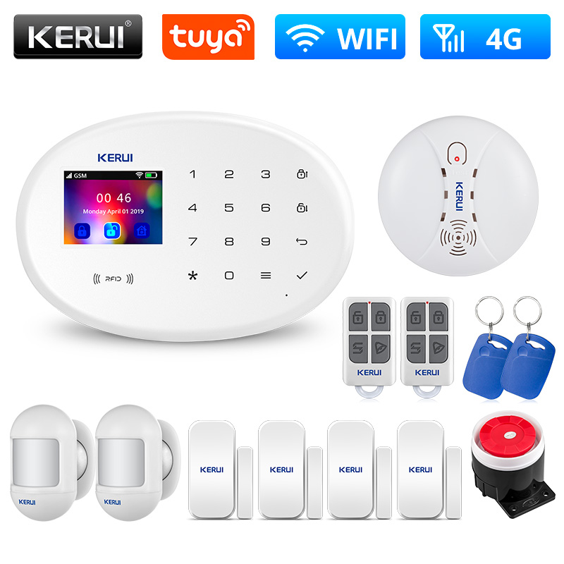 KERUI W204 4G WIFI GSM Tuya Smart Home Security Alarm System 2.4 Inch TFT Touch Panel APP Control Burglar Smoke Detector