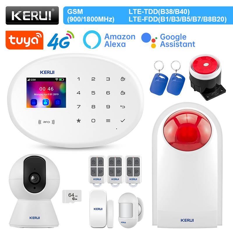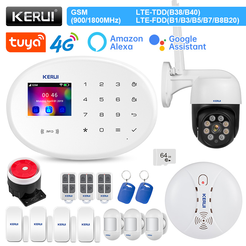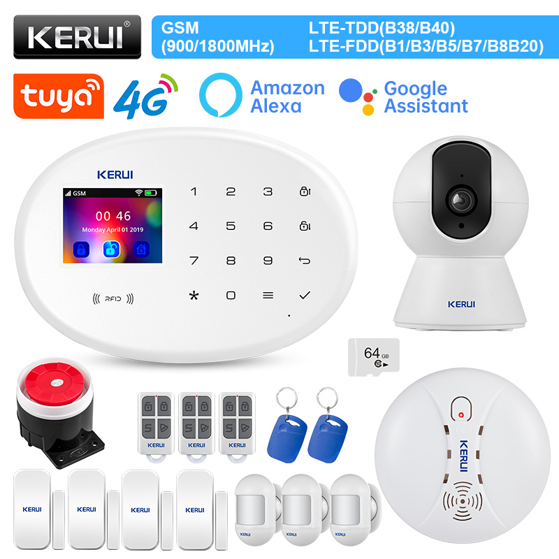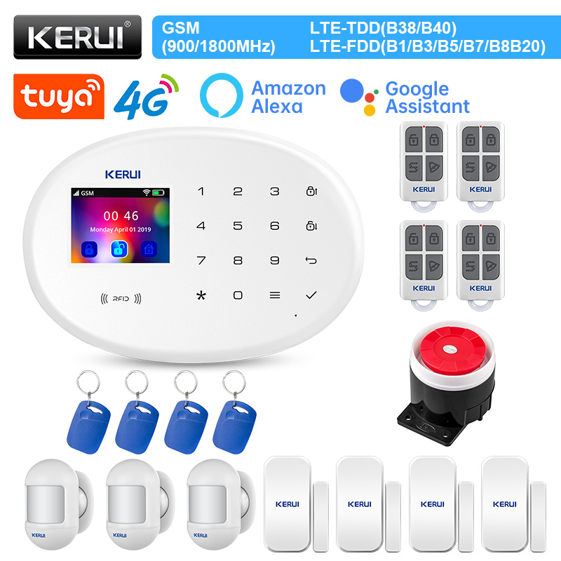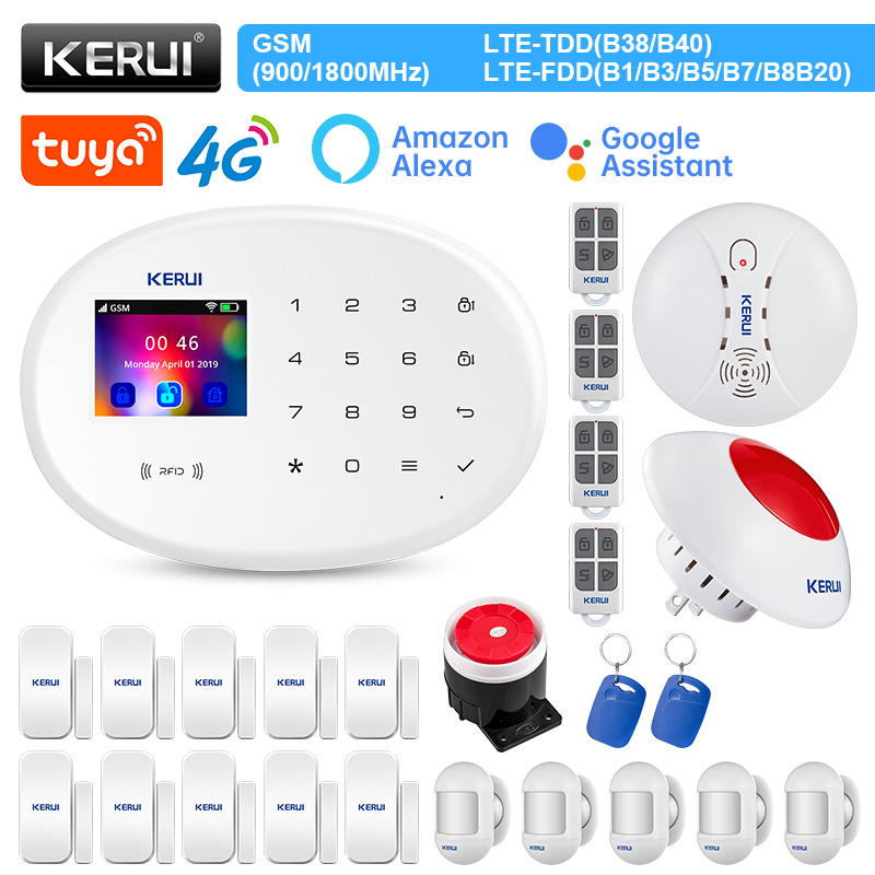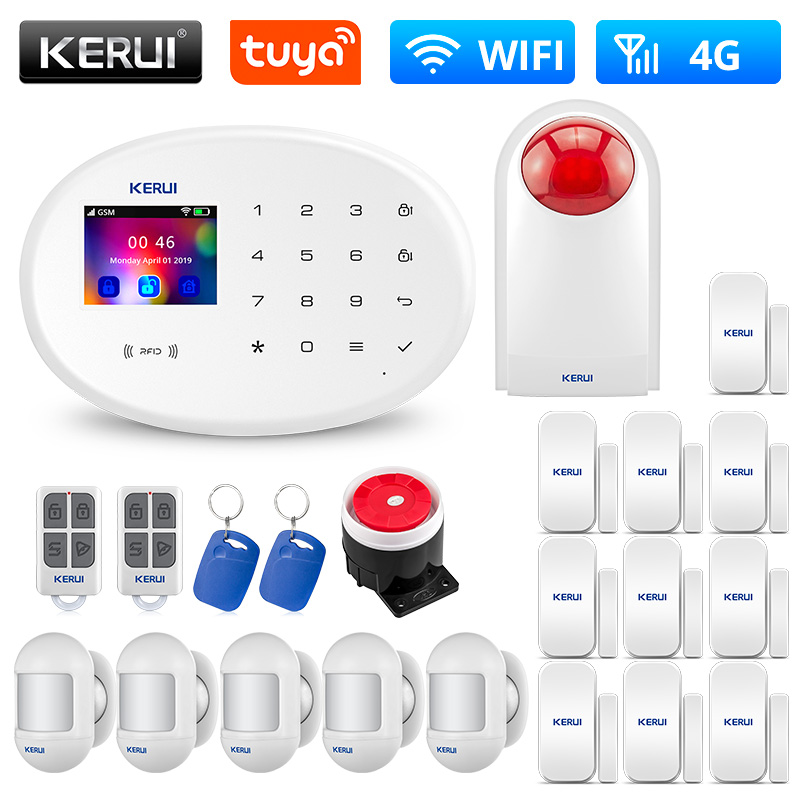 KERUI W204 4G WIFI GSM Tuya Smart Home Security Alarm System 2.4 Inch TFT Touch Panel APP Control Burglar Smoke Detector