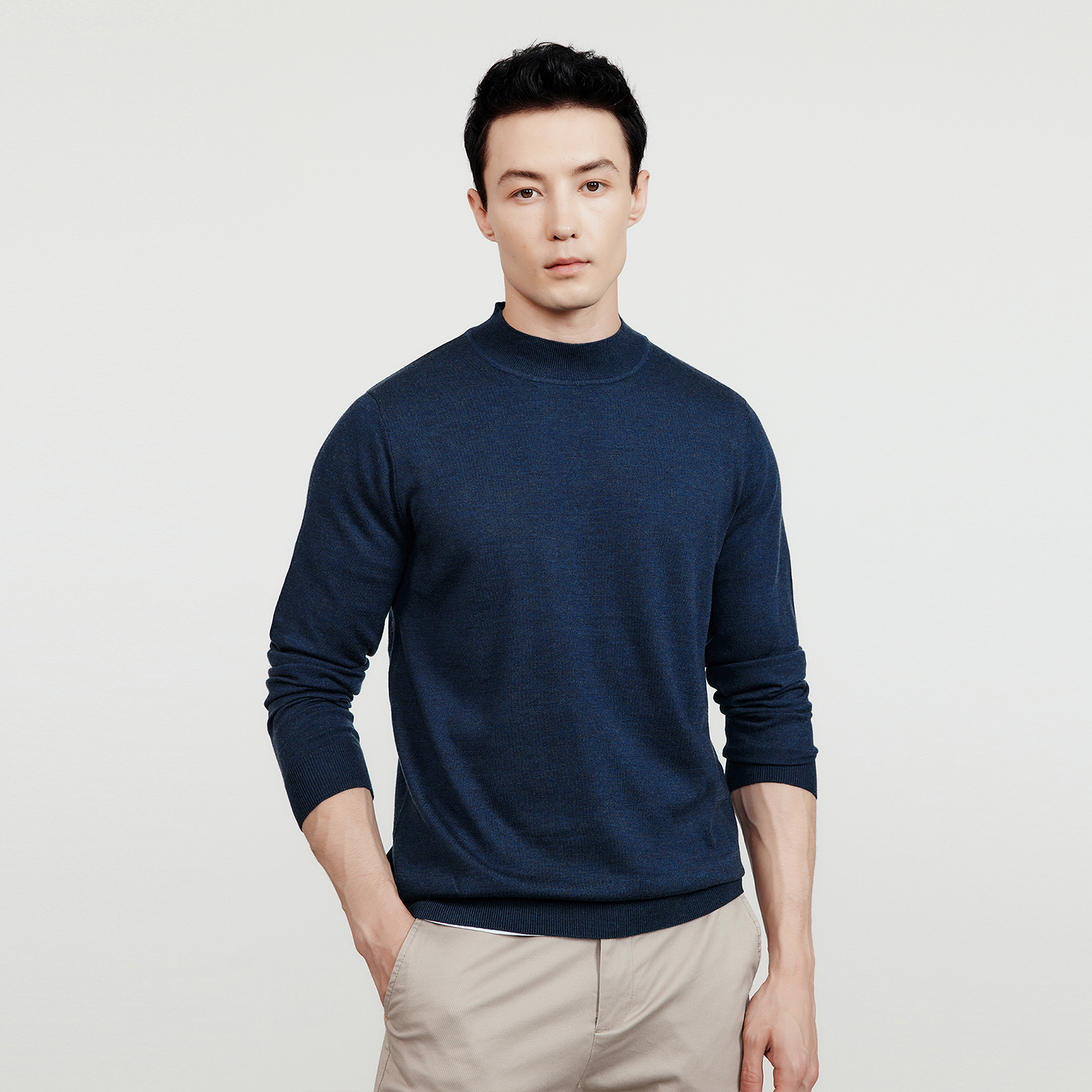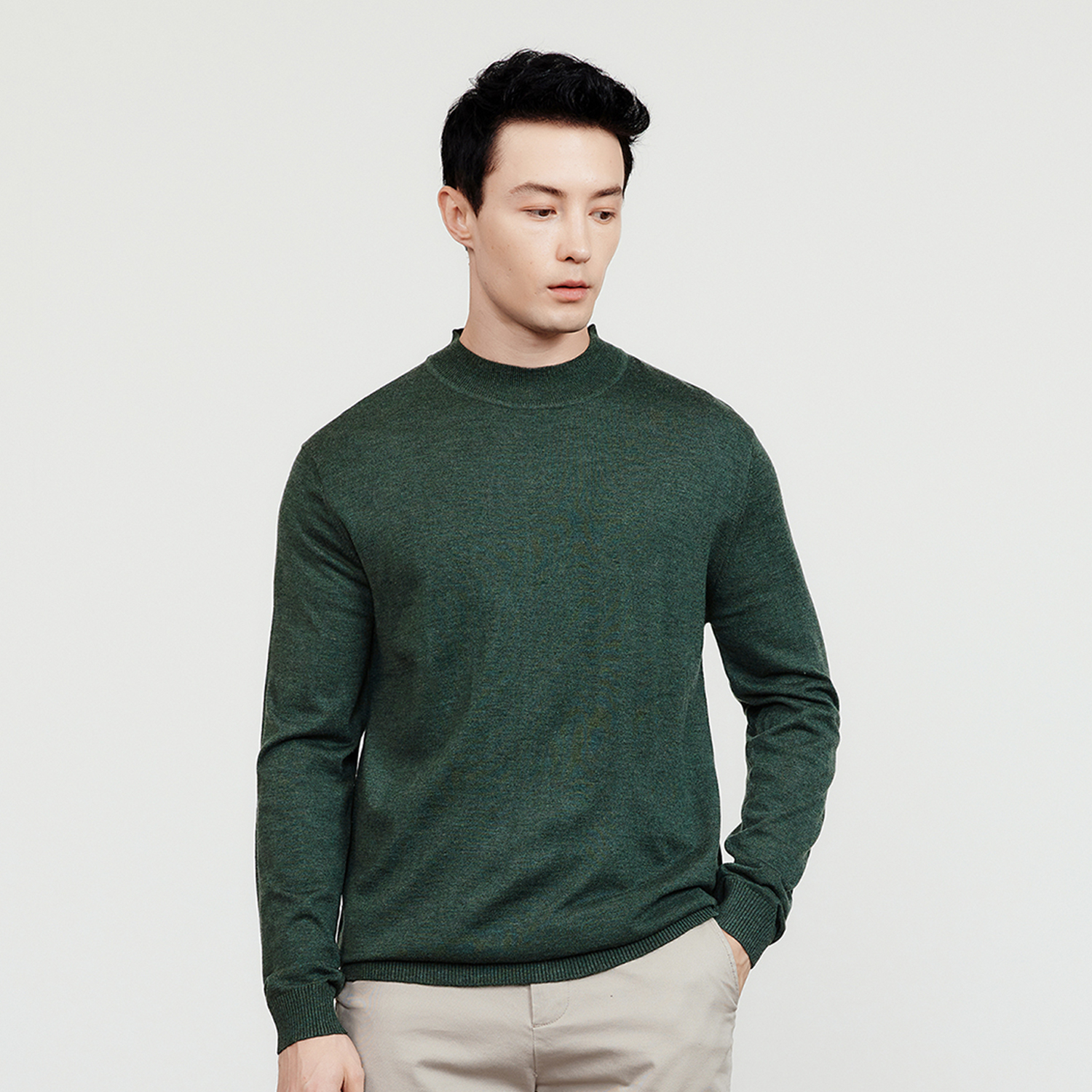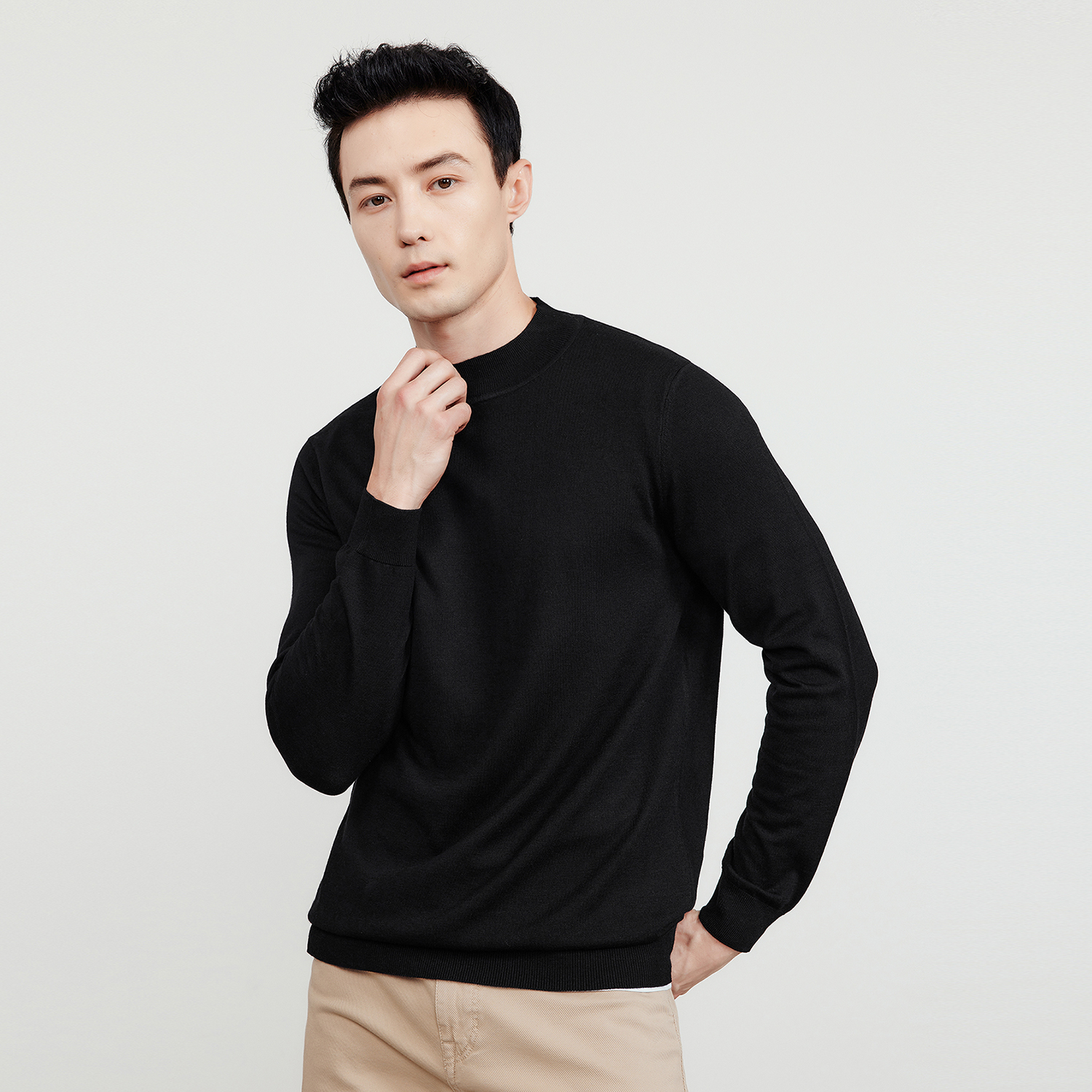 KUEGOU Autumn Men Sweater Solid color Semi-high Collar High Slim Male Soft Knitted Blends Wool Warm 710