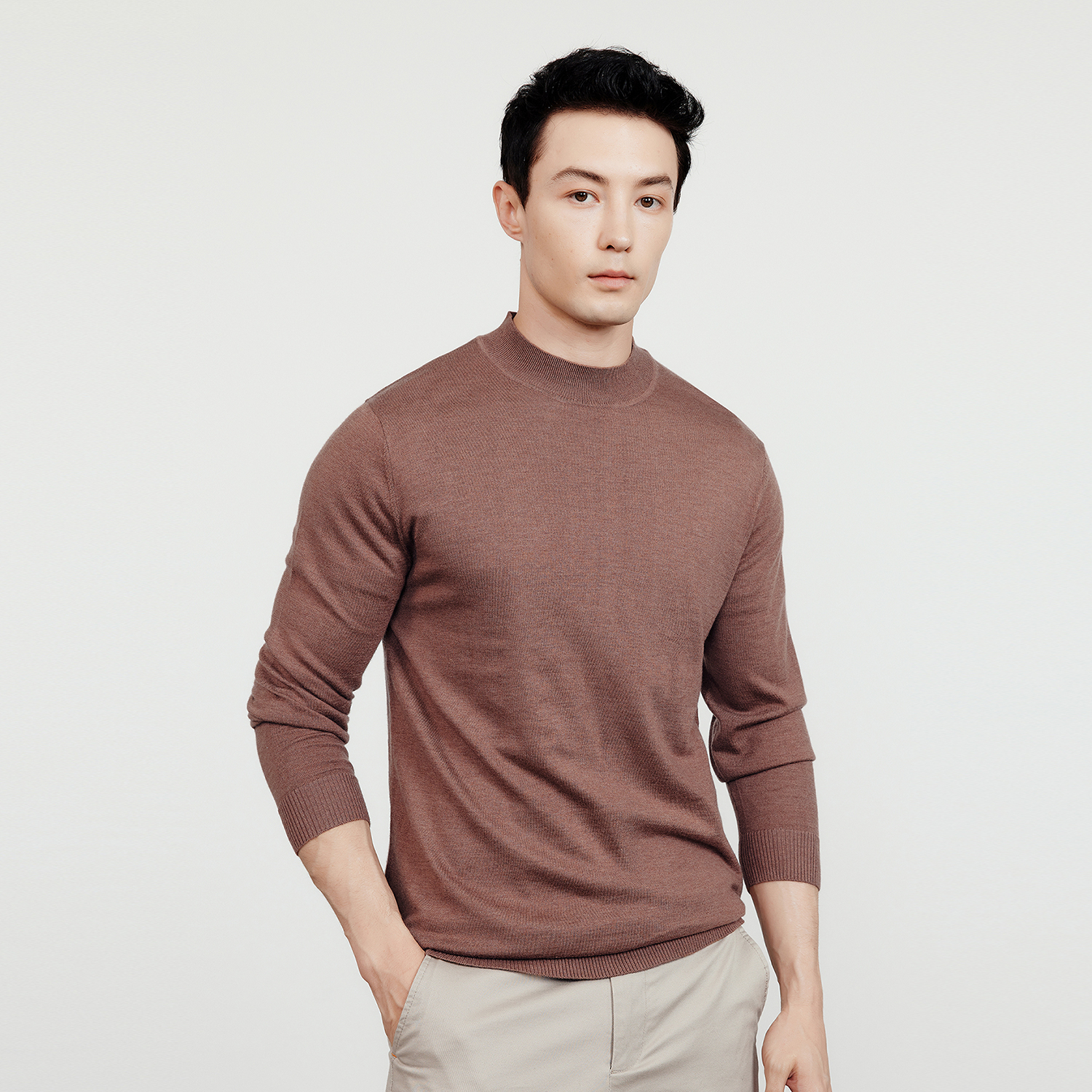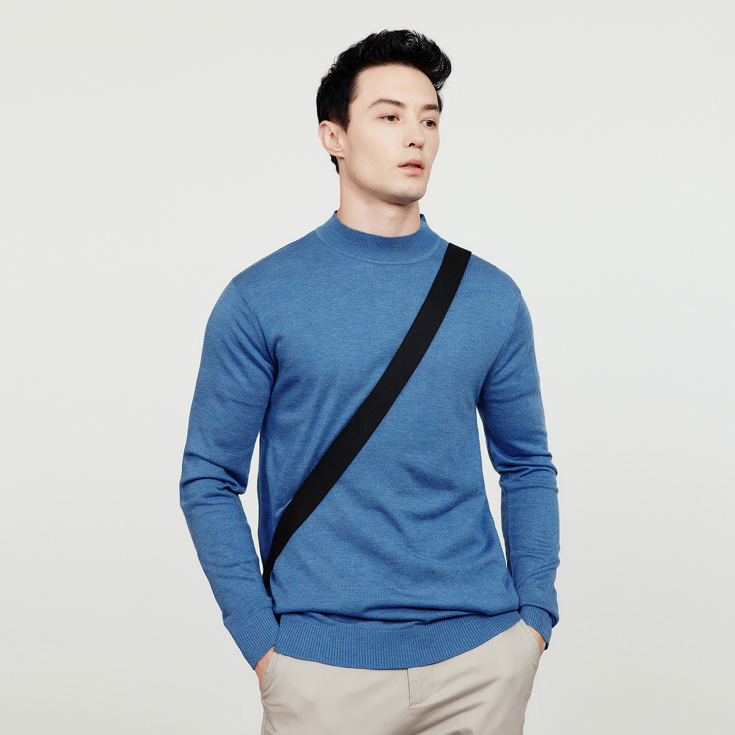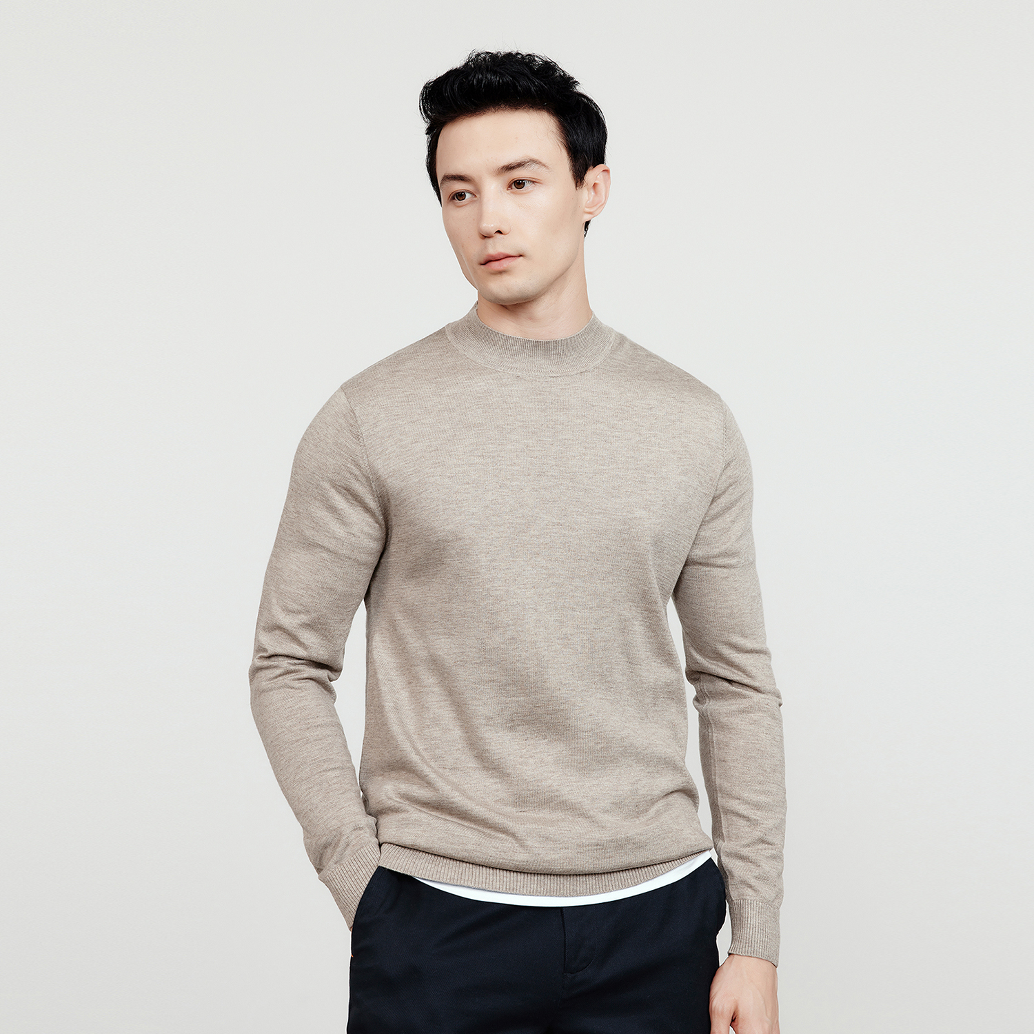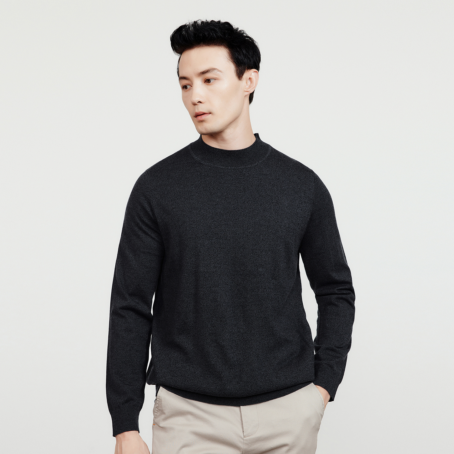 KUEGOU Autumn Men Sweater Solid color Semi-high Collar High Slim Male Soft Knitted Blends Wool Warm 710