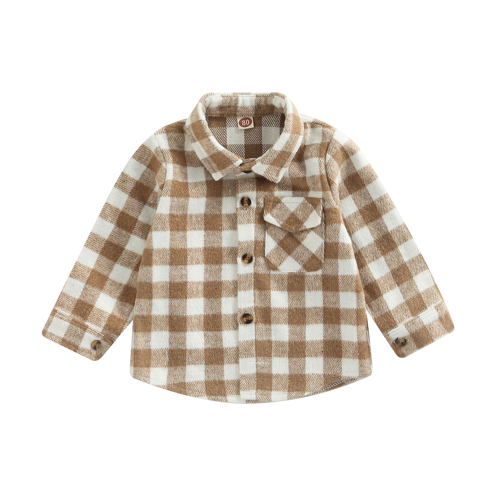 Kids Boys Shirt, Long Sleeve Turn-down Collar Plaid Button-down Autumn Tops for Casual Daily