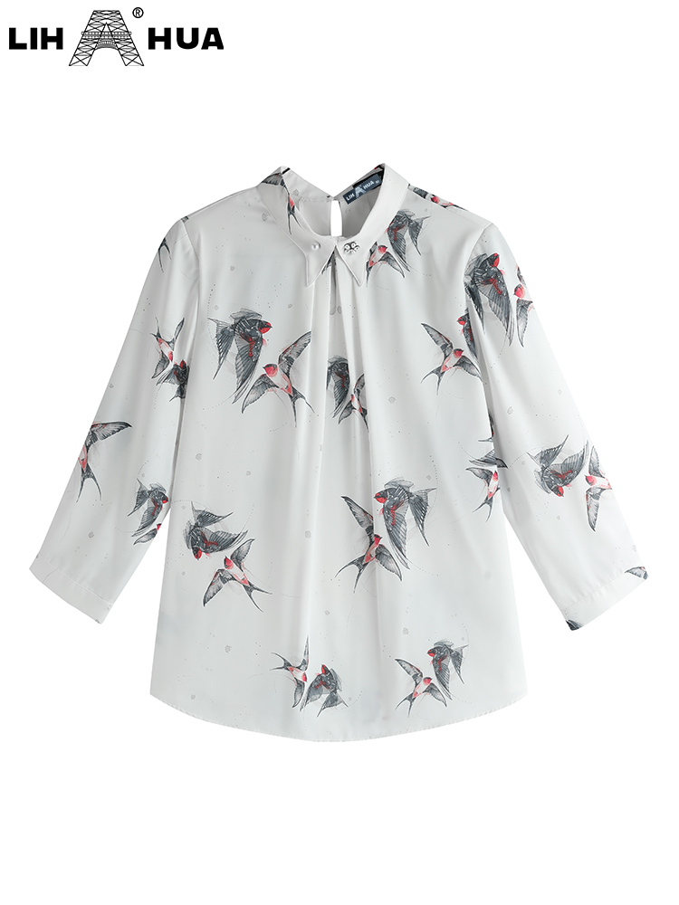 LIH HUA Women's Plus Size T-Shirt Polyester Spring T-Shirt 3/4 Sleeve Print Graphic Loose Top