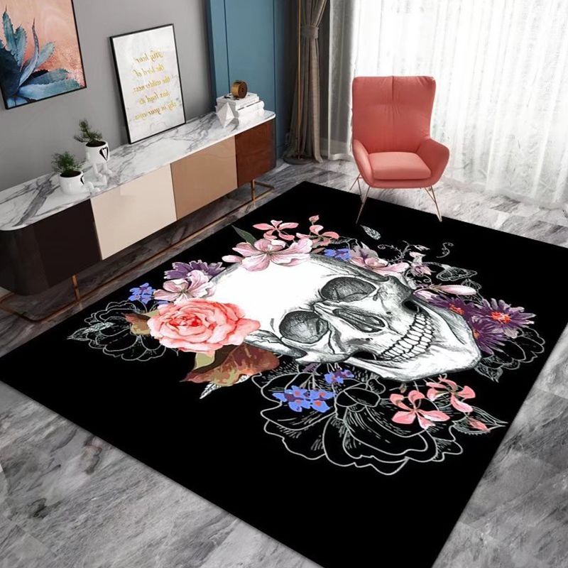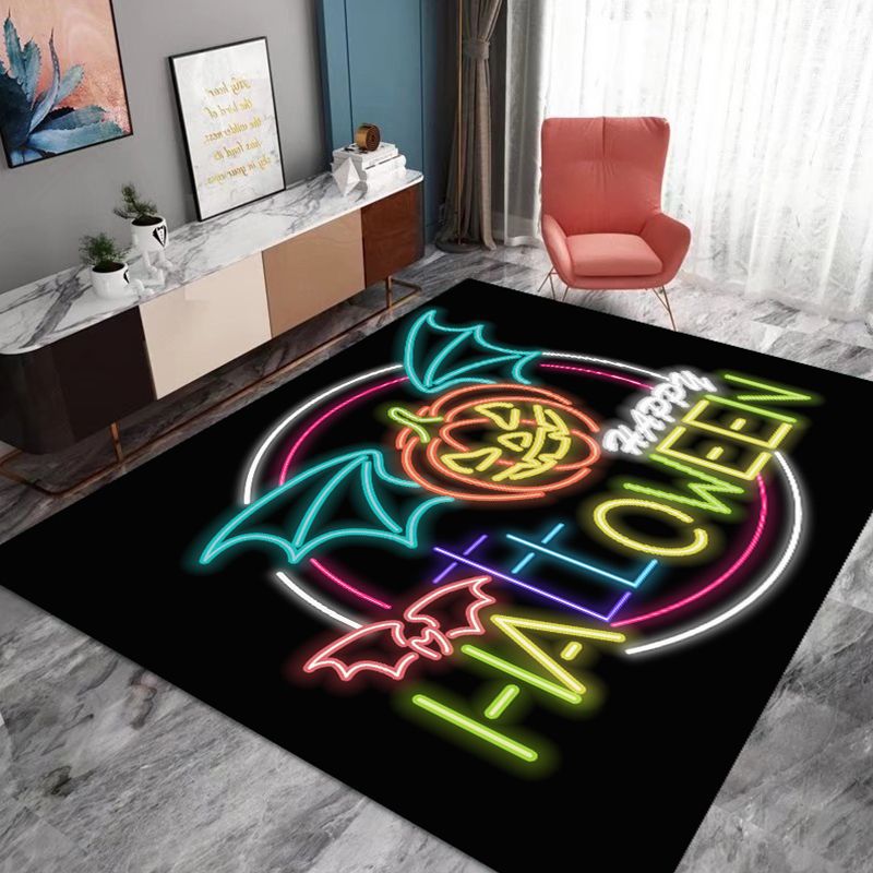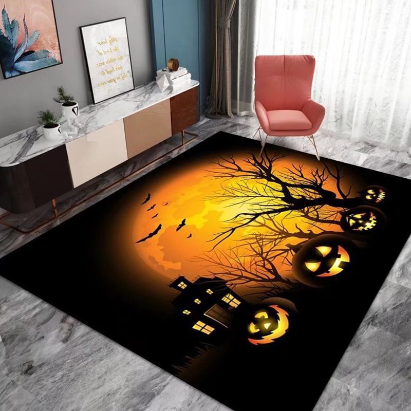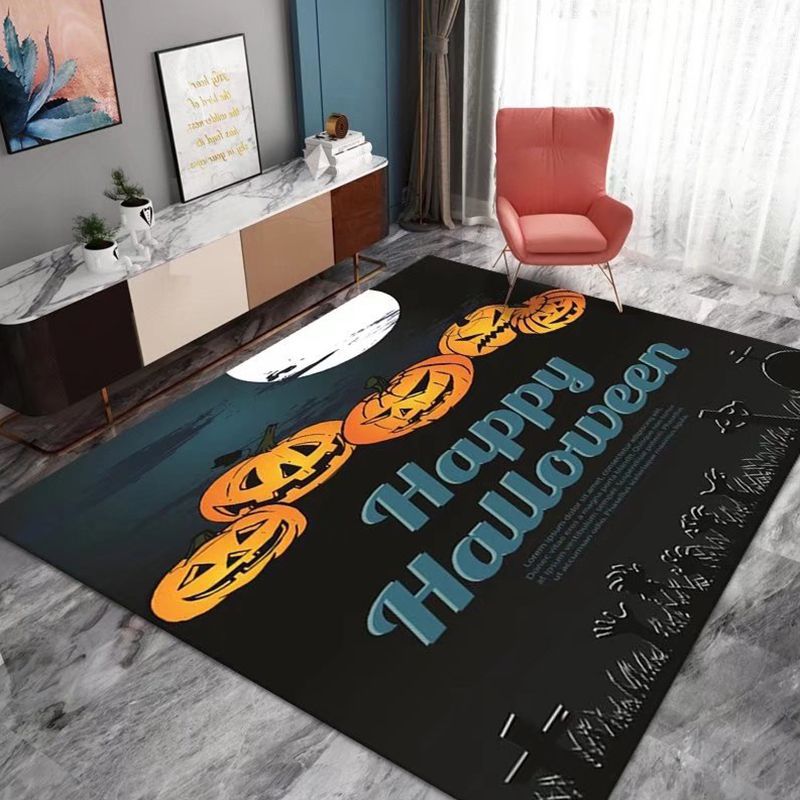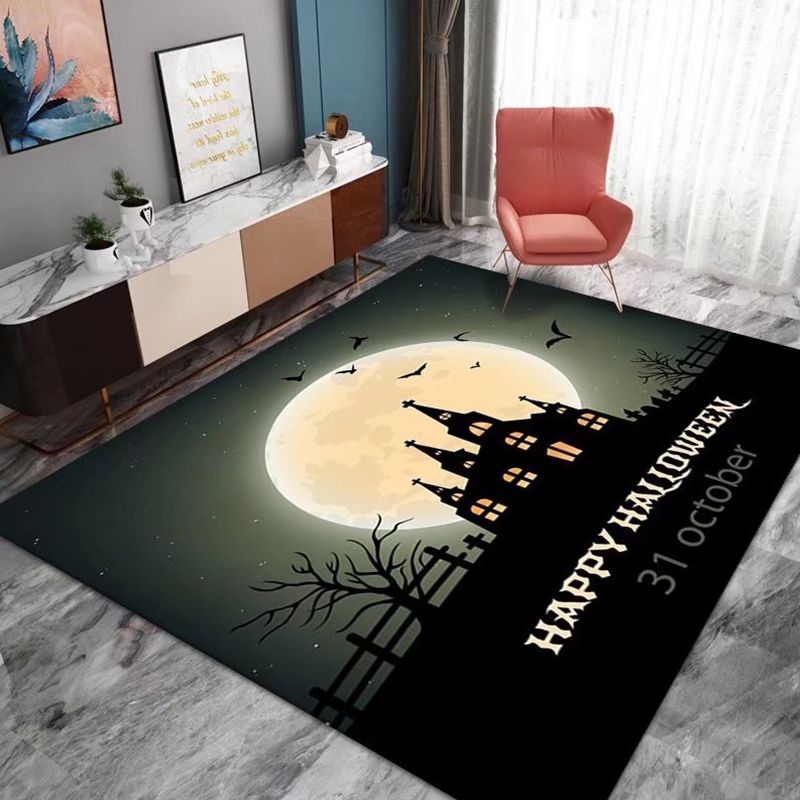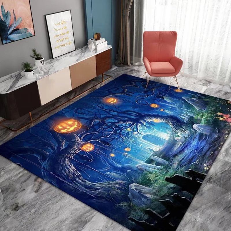 LUOLAL Creative Cartoon Crystal Velvet Rug Living Room Bedroom Horror Rug Homestay Halloween Decoration Home Rectangular Carpet