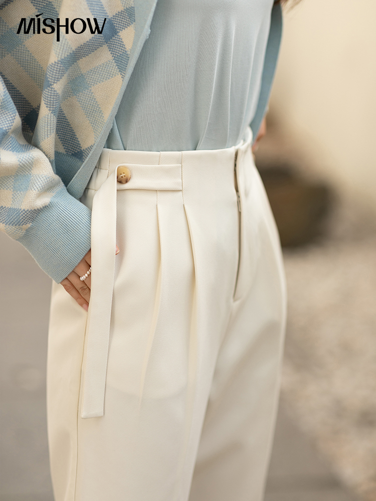 MISHOW Spring Pants For Women High Waist Ankle Length Office Lady Elegant Straight Trousers Female Bottoms MXB11K0149