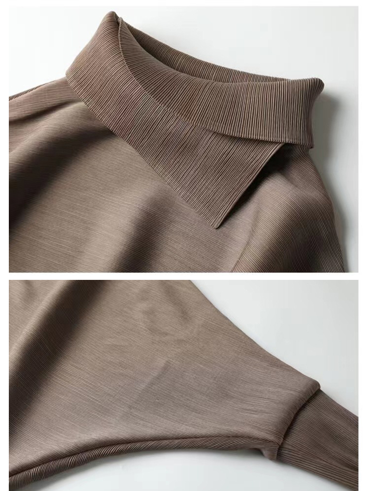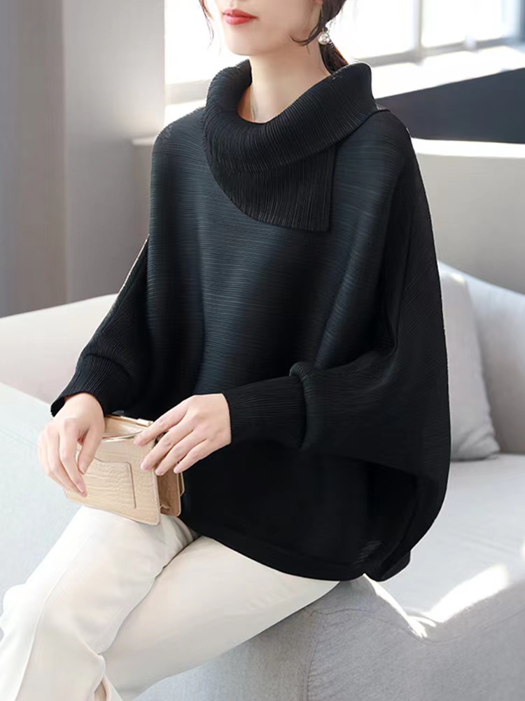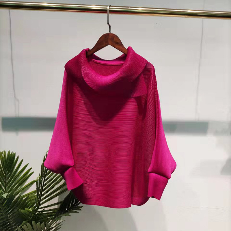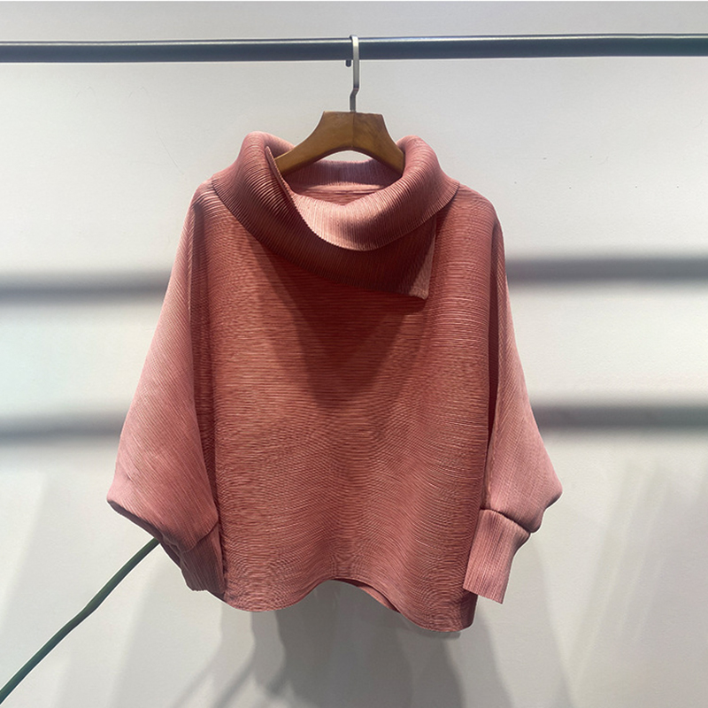 Miyake Pleated Spring Solid Color Top Lapel Loose Large Size Bat Sleeves Designer Polo Collar Aesthetic Clothes