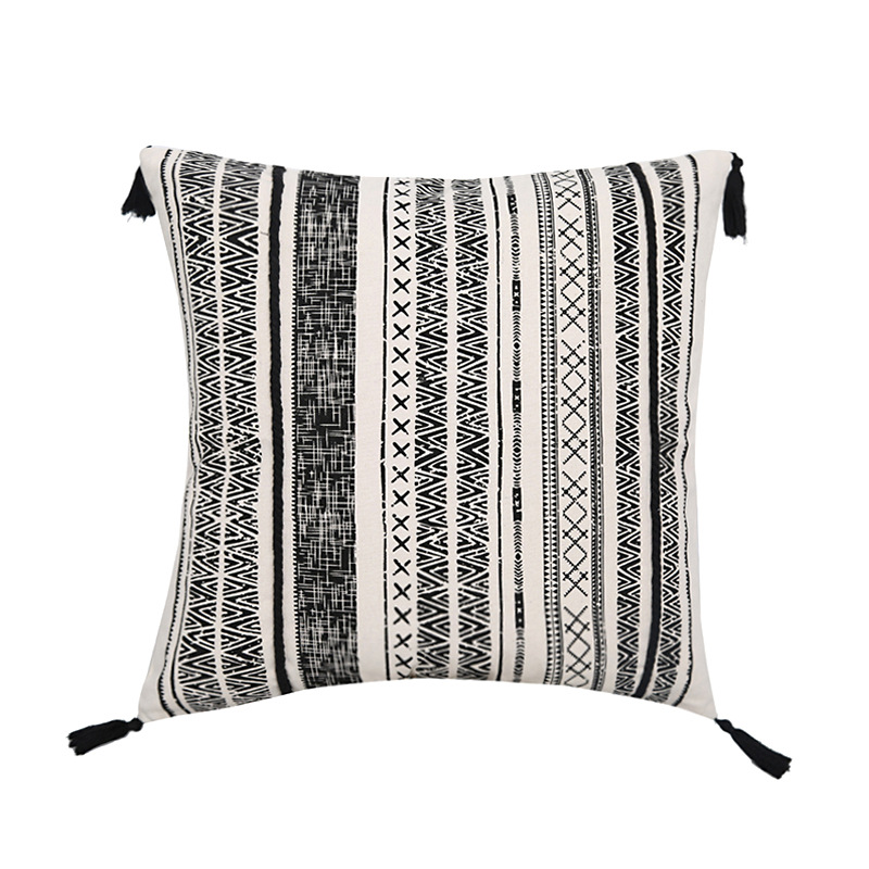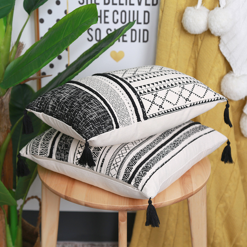 Molotu Moroccan Style Geometric Throw Pillow With Tassel Cushion Cover