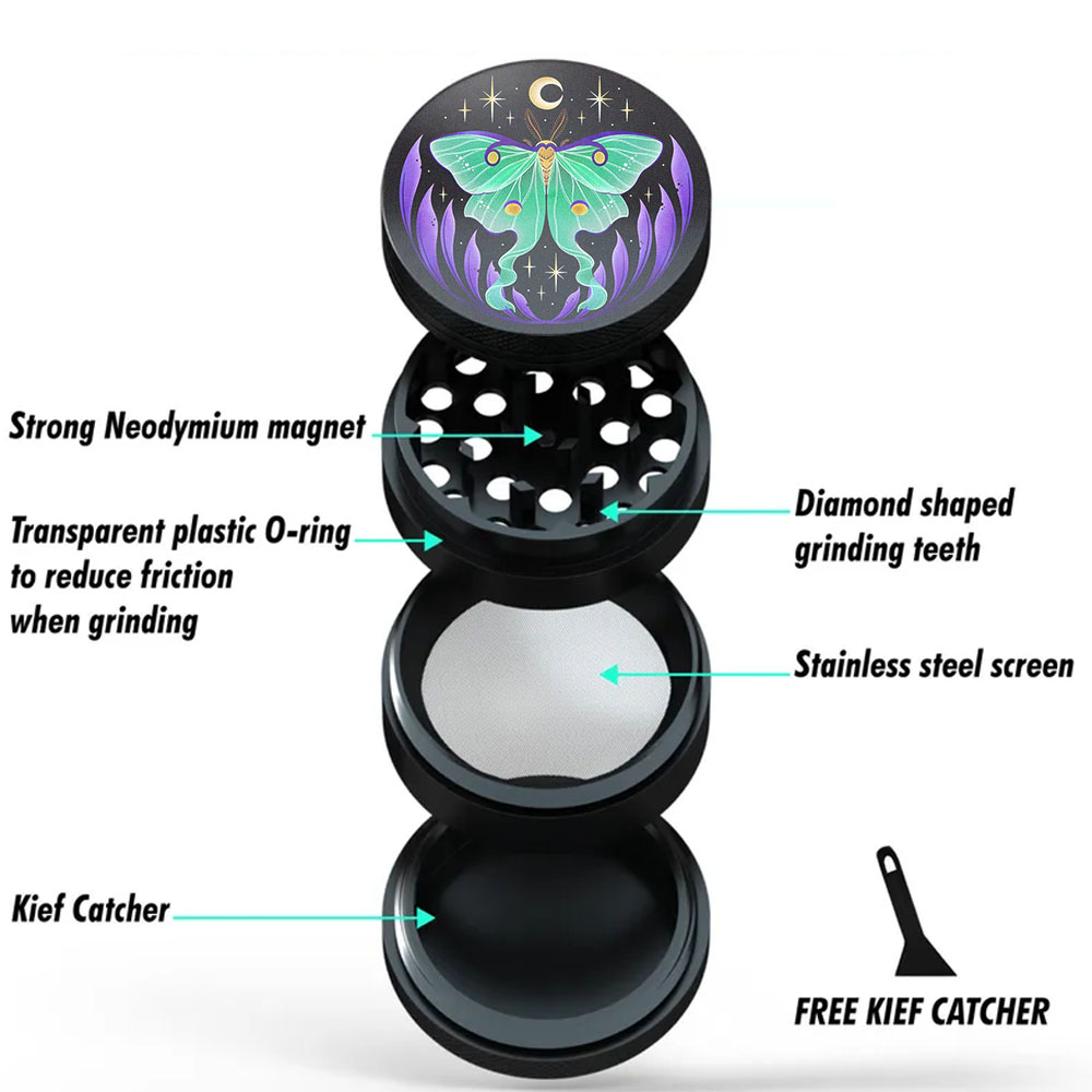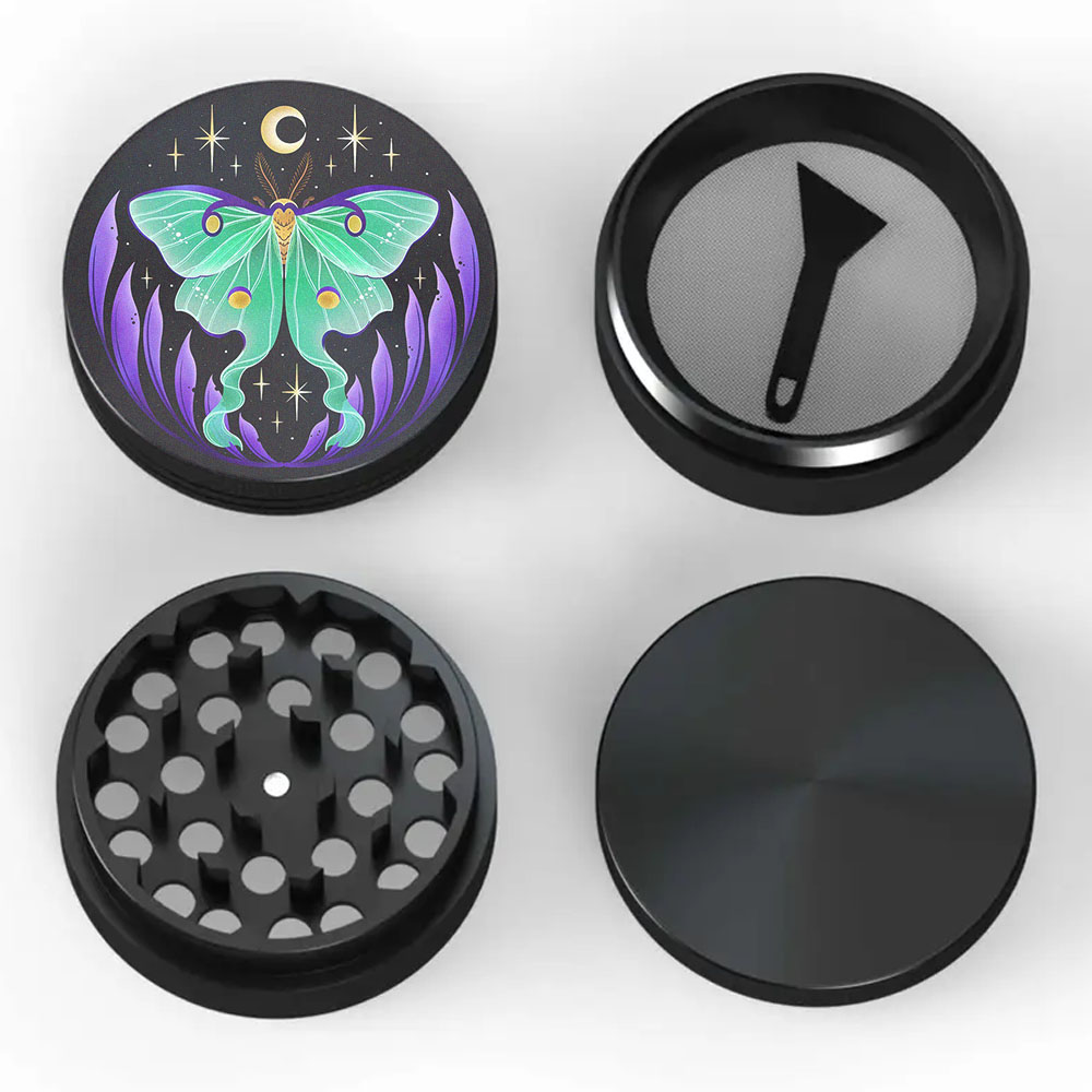 Moon Butterfly 40MM 4-Layer Metal Herbal Herb Tobacco Grinder Black Grinders Smoking Pipe Smoking Accessories