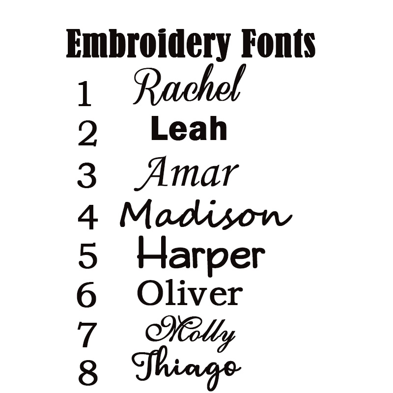 please send us the baby name and the embroidery color you want after you place the order by aliexpress message.if no indication on embroidery color,will do the embroidery color as link color photo.