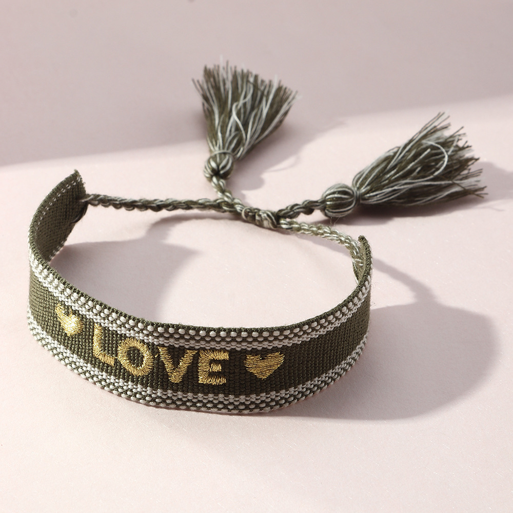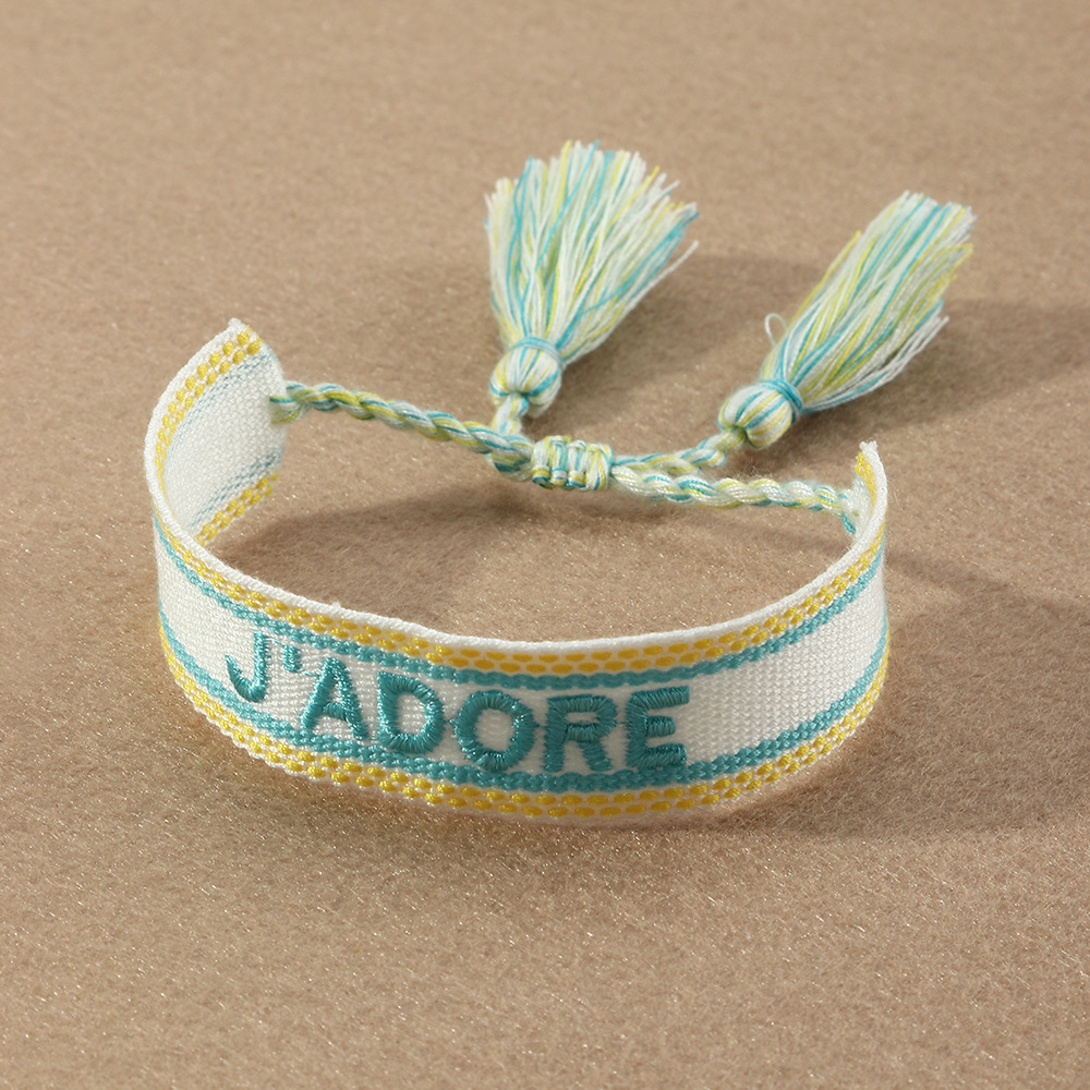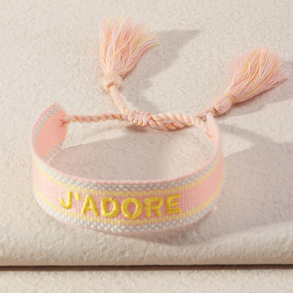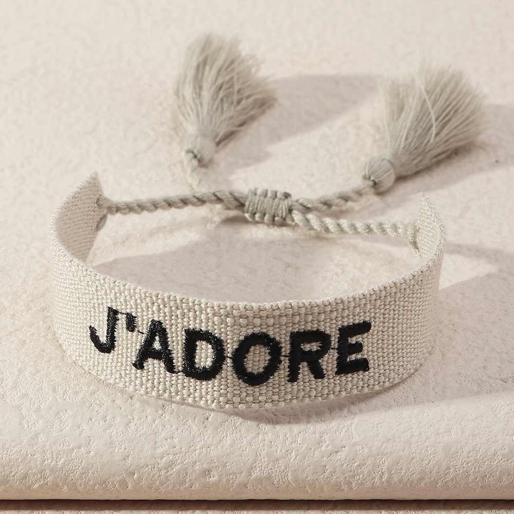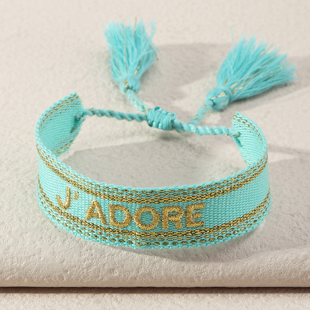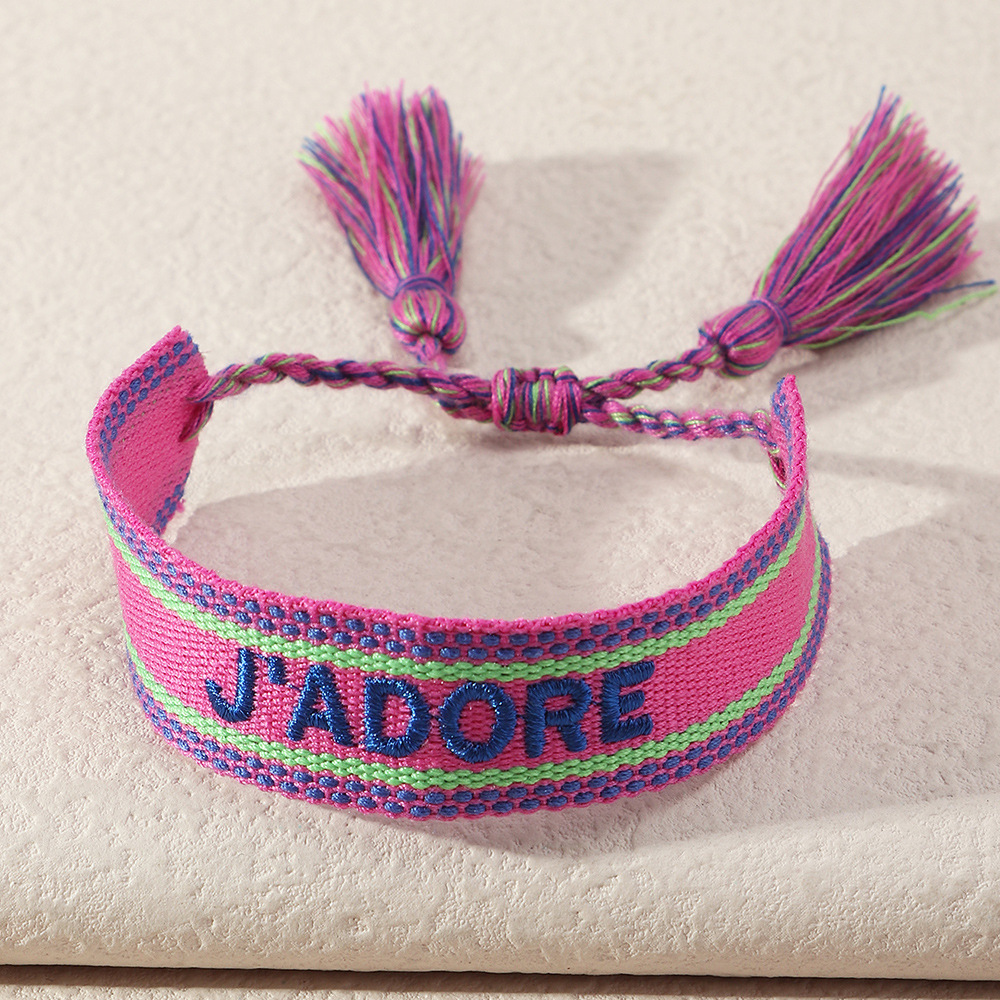 Nepal Ethnic Fabric Bracelet J ADORE Embroidery Letter Hand-woven Tassels Wrap Bracelets for Women Men Friendship Gift