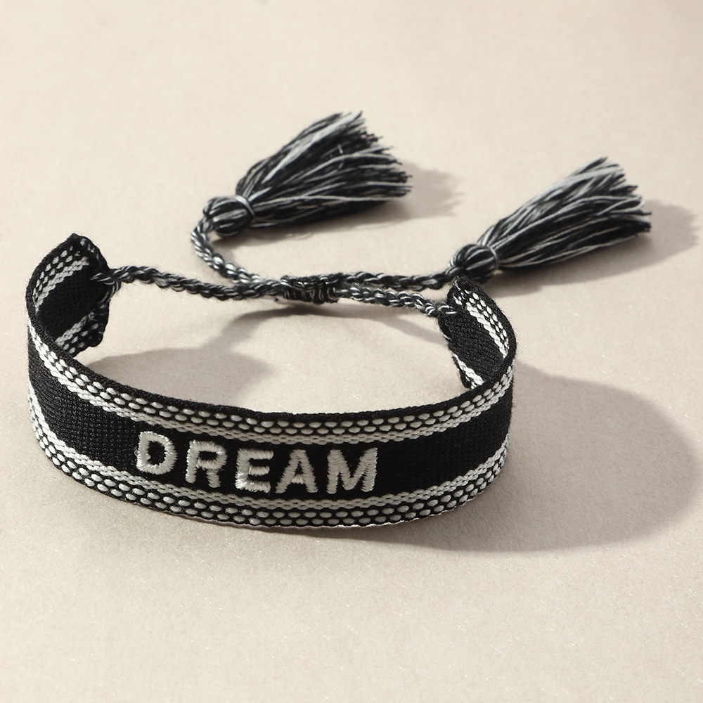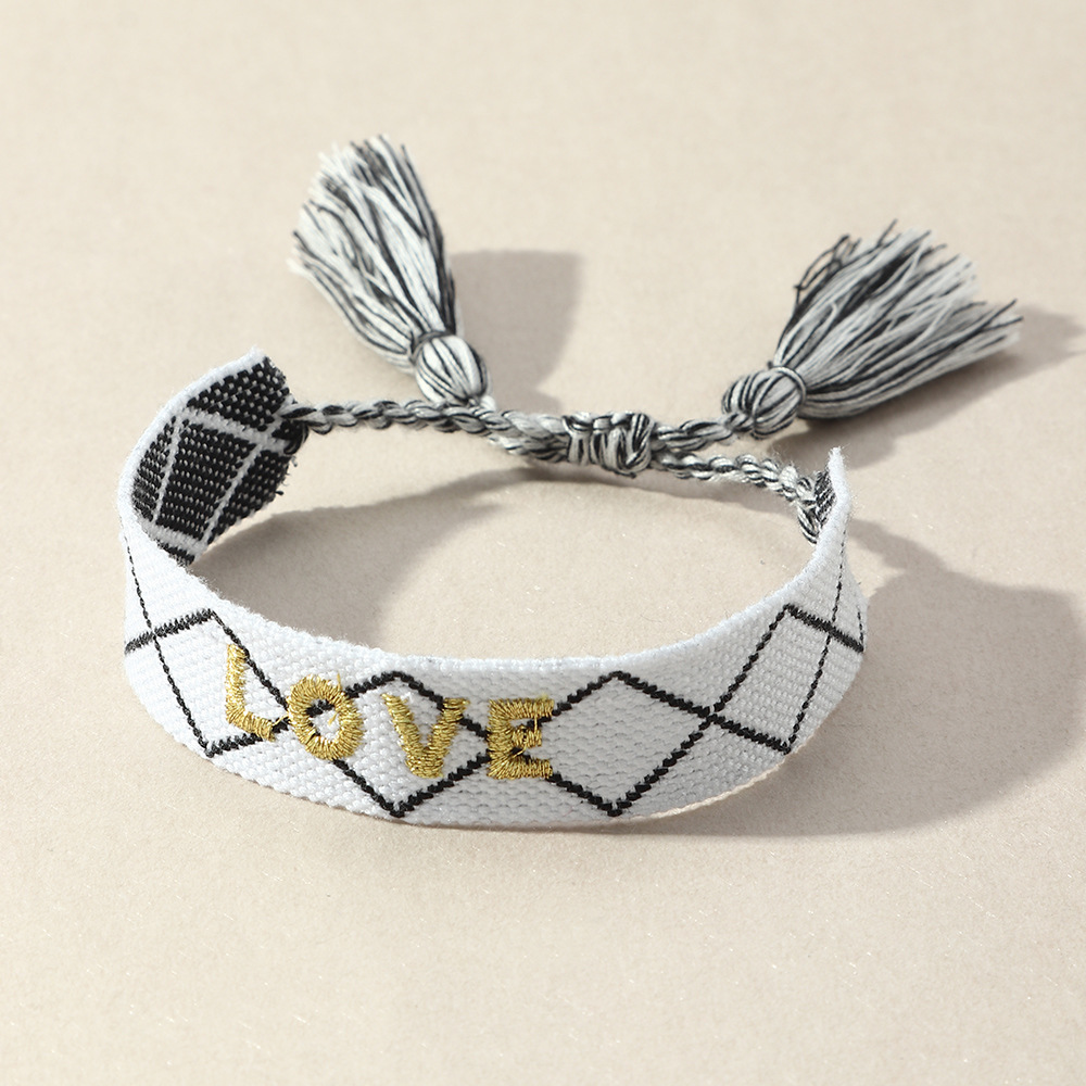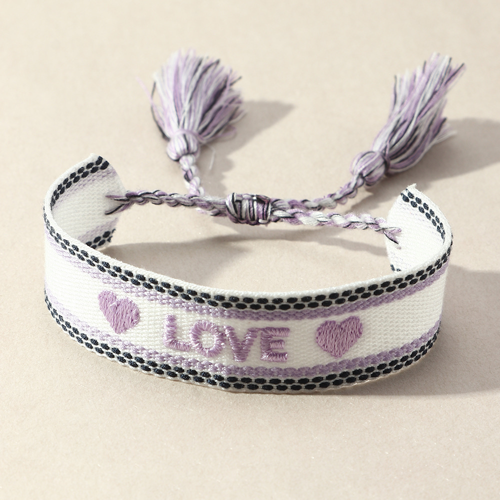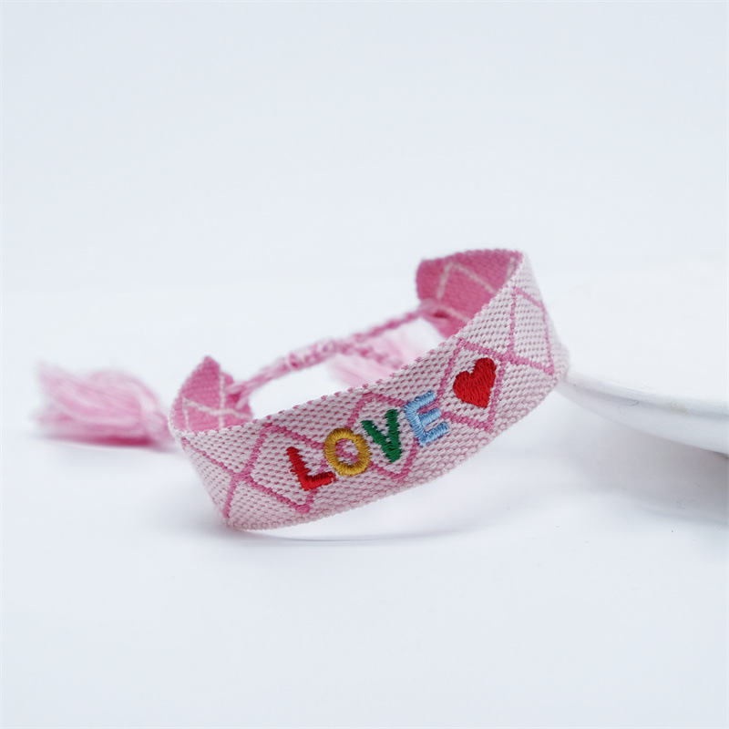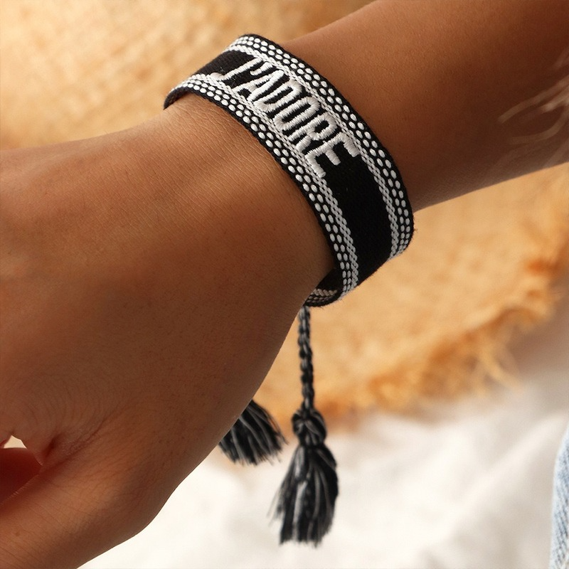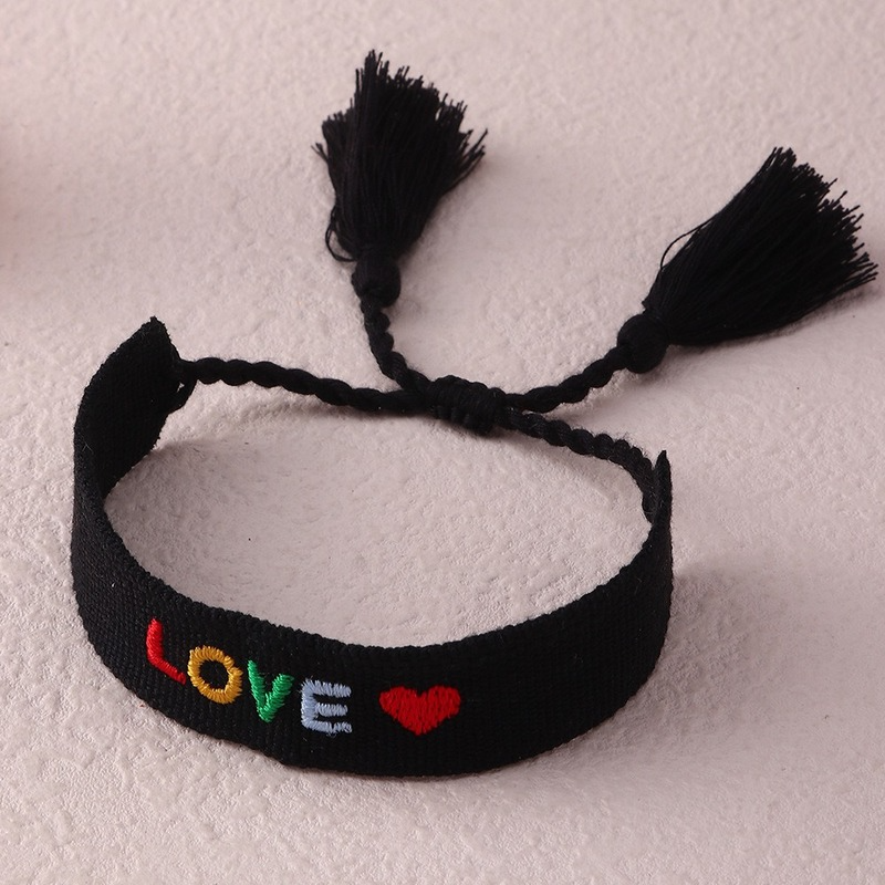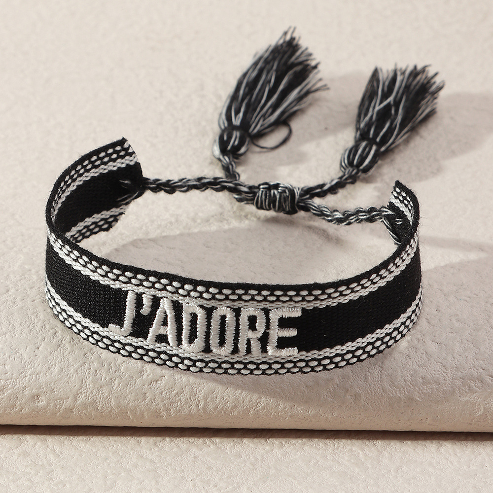 Nepal Ethnic Fabric Bracelet J ADORE Embroidery Letter Hand-woven Tassels Wrap Bracelets for Women Men Friendship Gift