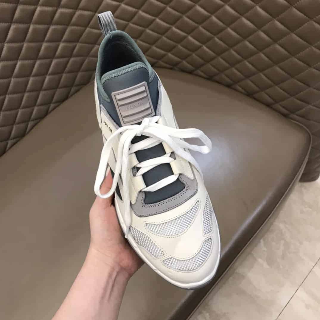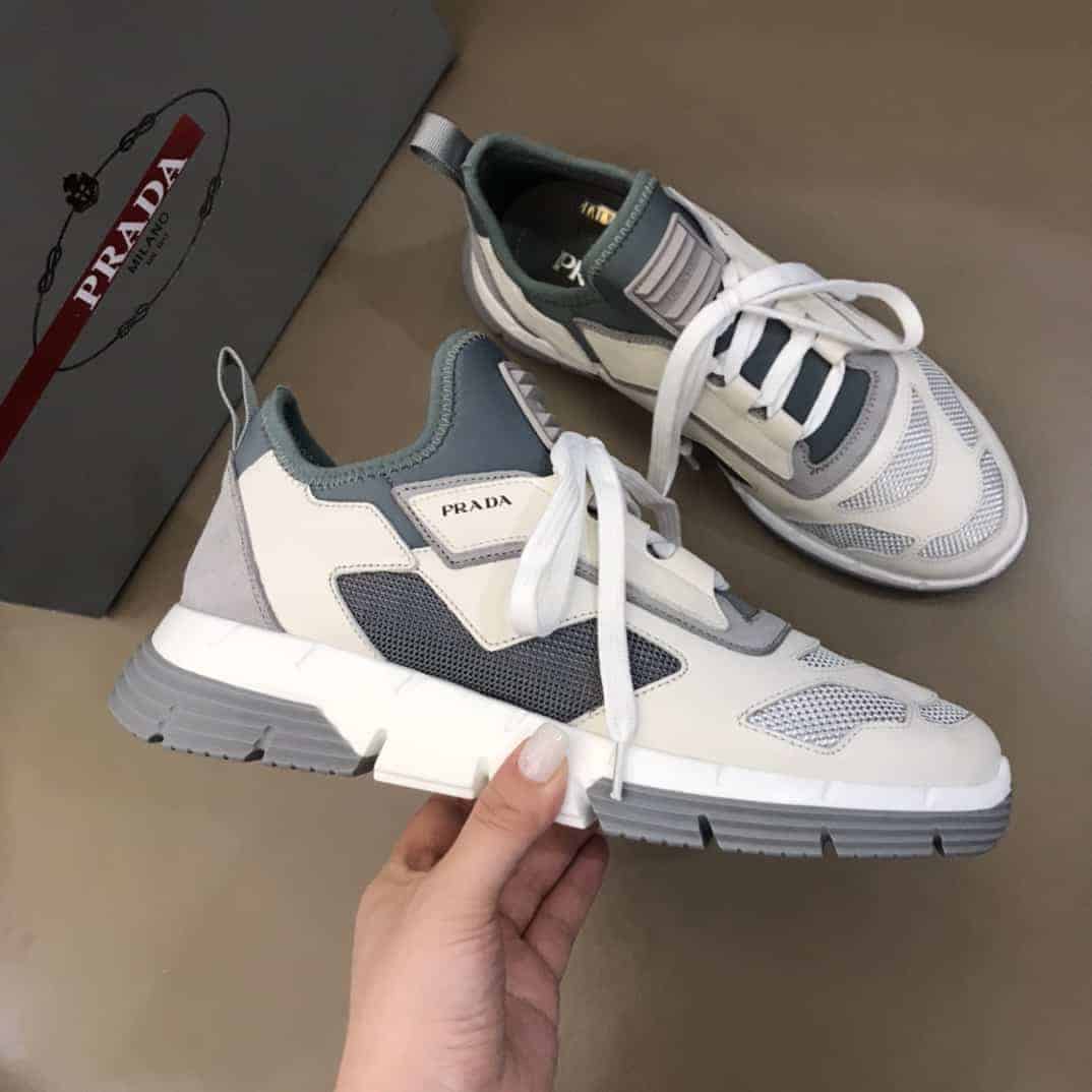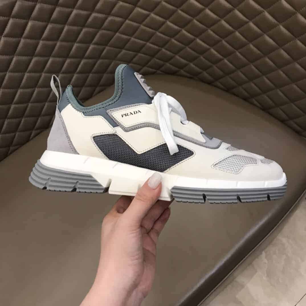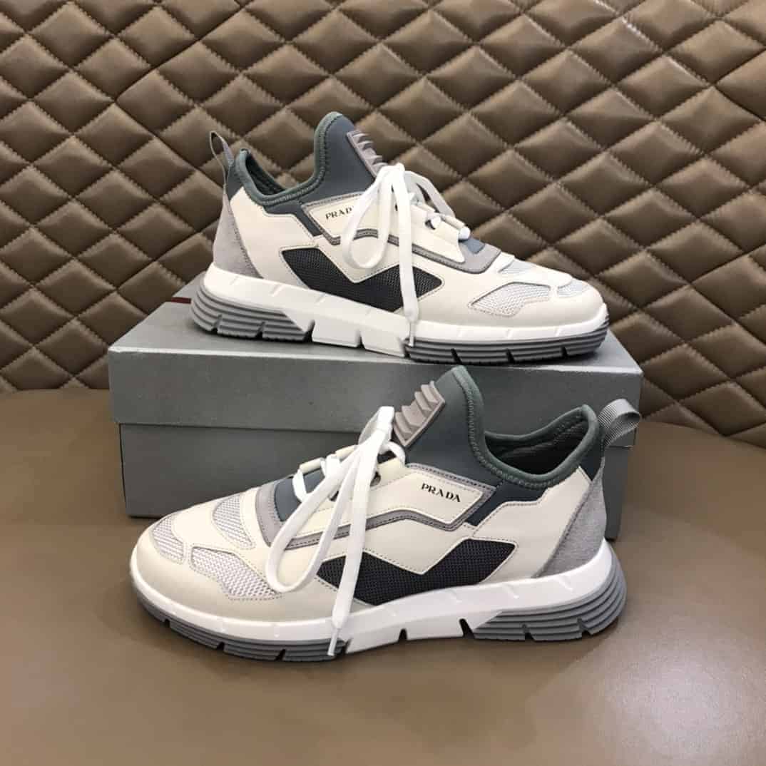 PRADA MACRO RE-NYLON AND BRUSHED LEATHER SNEAKERS – PD023