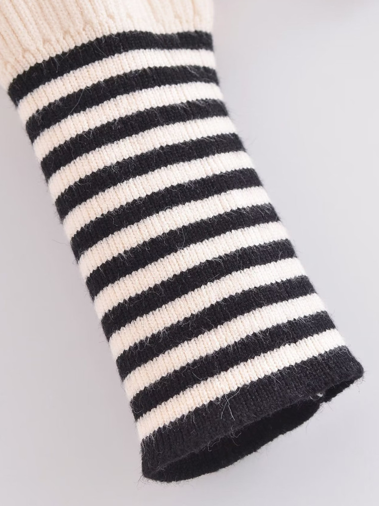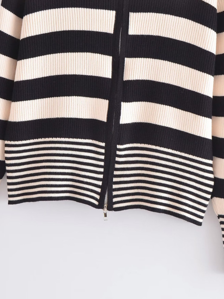 PUWD Women Lapel Patchwrok Striped Sweater 2022 Autumn Winter Fashion Girls Casual Female Long Sleeve Zipper Cardigan Sweater