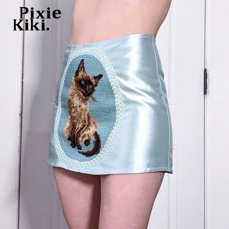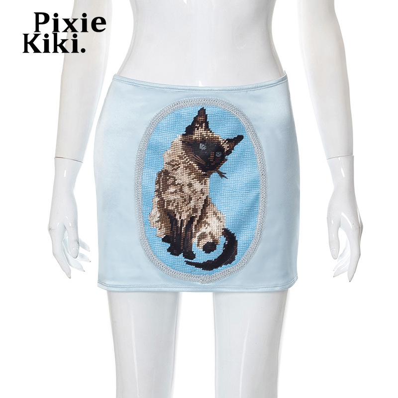 PixieKiki Cute Cartoon Animal Print Mini Skirt Y2k Aesthetic Vintage Clothes Sexy Satin Skirts Womens Summer P85-BG10