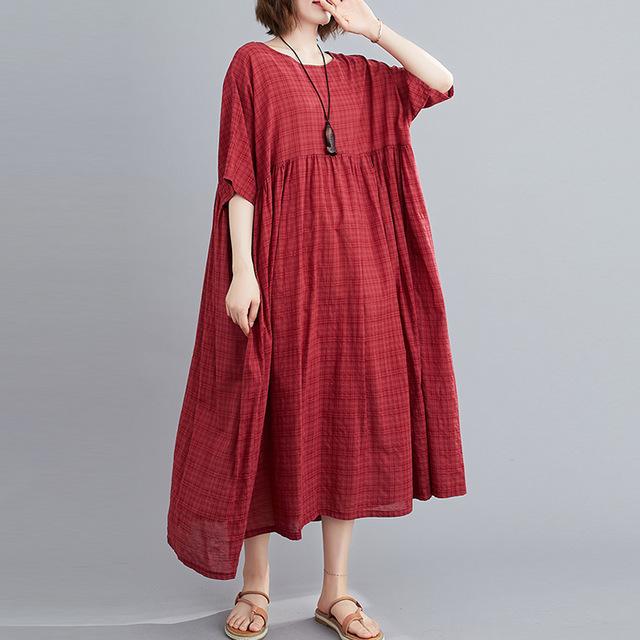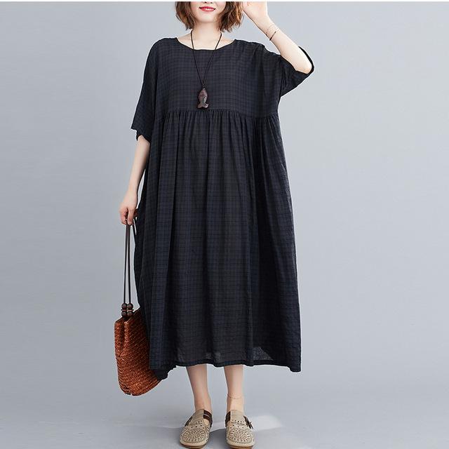 Plus Size Plaid Casual Cotton Summer Dress Women Oversized Vintage 4XL 5XL 6XL Ladies Dresses Robe Femme Beach Woman Dress