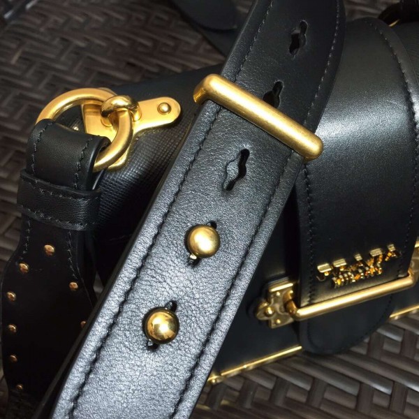 Prada Cahier Shoulder Bag In Black Leather