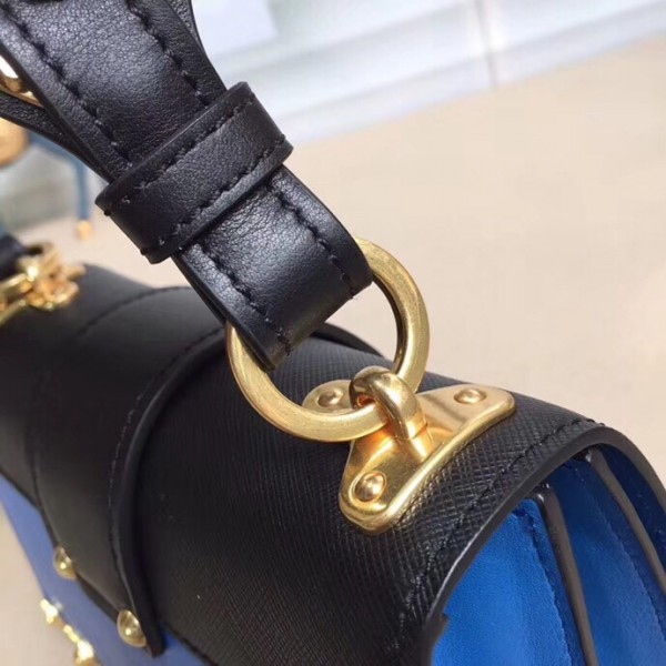 Prada Cahier Shoulder Bag In Blue Hydra /Black Leather