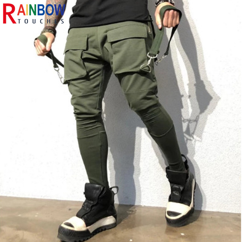 Rainbowtouches Sports Men Stretch Tights Sweat Absorbing And Breathable Fitness Casual Multi Pocket Stitching Cargo Pants Mens