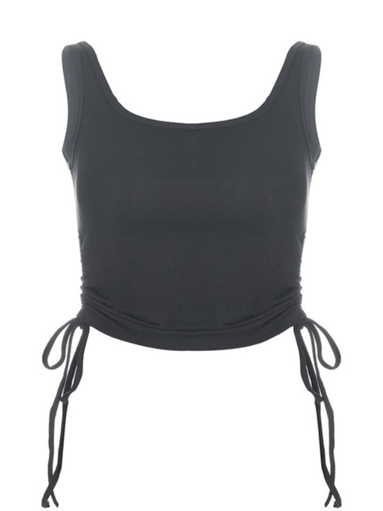 Ruched Sleeveless Tank Tops Tees Women Solid Casual Crop Top Ladies High Street Tie Up Croptop Summer Fitness