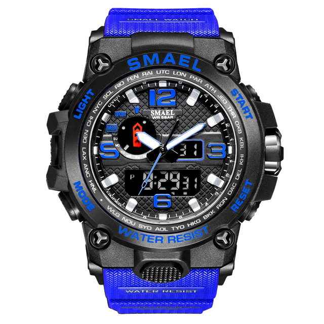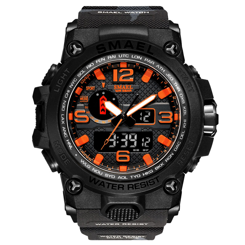 SMAEL Men Sports Watches Dual Display Analog Digital LED Electronic Quartz Wristwatches Waterproof Swimming Military Watch