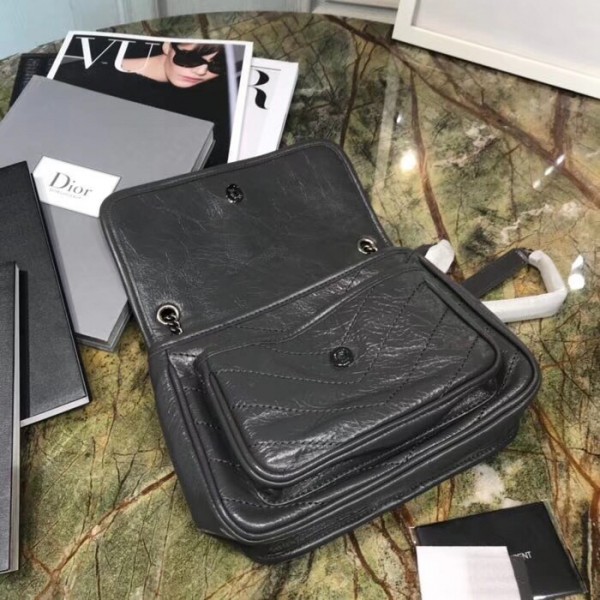 Saint Laurent Baby Niki Chain Bag In Storm Gray Crinkled Leather