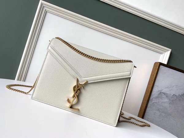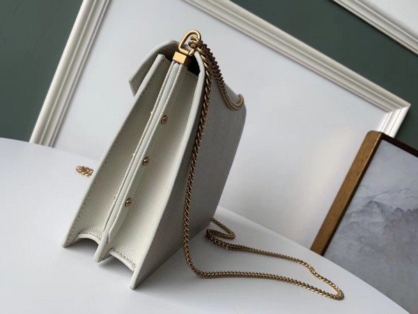 Saint Laurent Cassandra Clasp Bag In Blanc Grained Leather