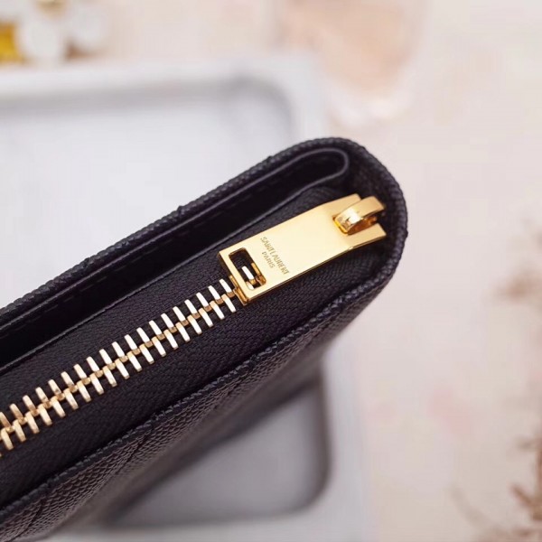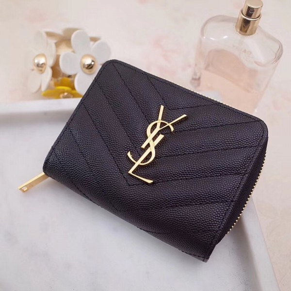It’s definitely not unusual for Saint Laurent to make its YSL interlocking monogram the centre of most its designs, and the brand sticks to its winning formula with the monogram compact zip around wallet. Trimmed with gold-tone hardware its compact profile is made from grain de poudre embossed leather with chevron quilting. It opens to reveal a neatly designed space for cash and cards, while a roomy zipped compartment is perfect for loose change.