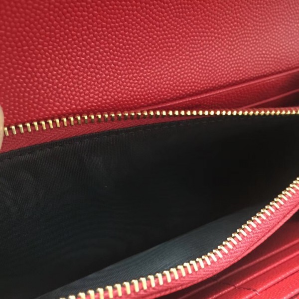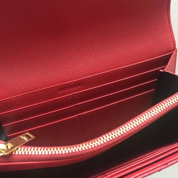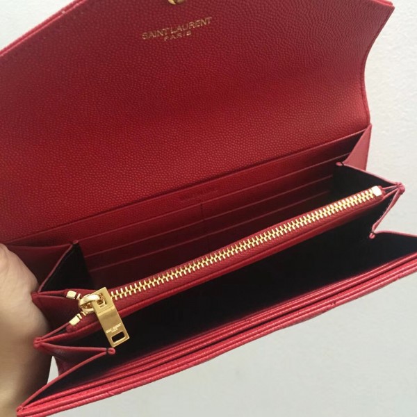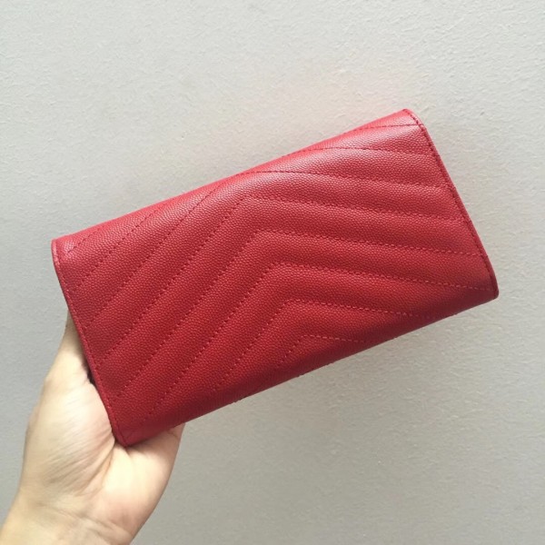 Saint Laurent Large Monogram Flap Wallet In Red Grained Leather