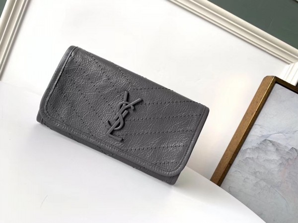 Inspired by the iconic Niki handbag, the Saint Laurent’s Niki large wallet in supple glossed-leather that’s crinkled to look somewhat vintage combines a functional design with fashion appeal. It’s embroidered with chevrons and decorated with iconic ‘YSL’ hardware. Sensorial yet functional, it is still large enough to fit all your daily essentials.
