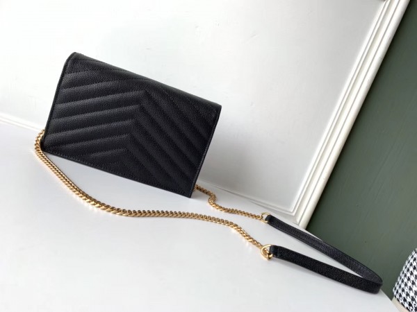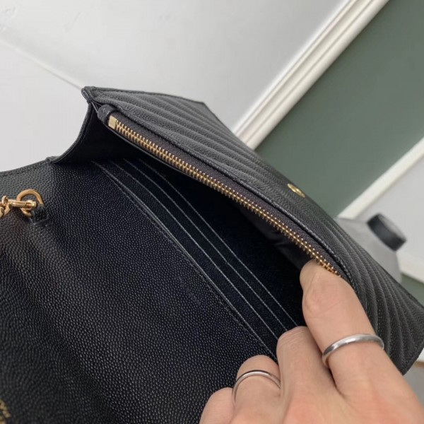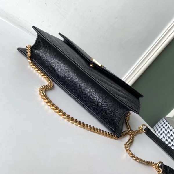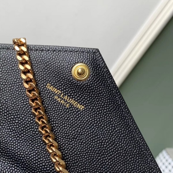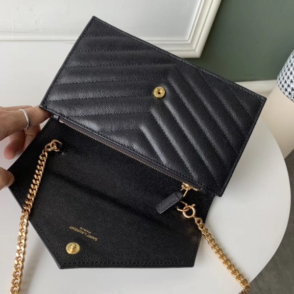 Saint Laurent WOC Envelope Chain Wallet In Black Leather