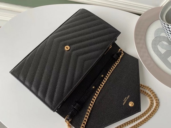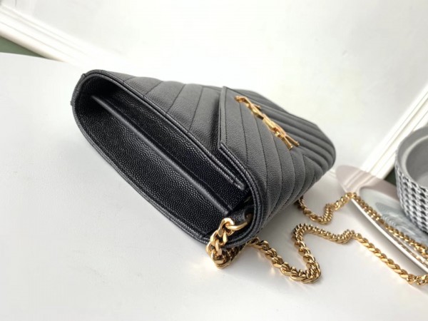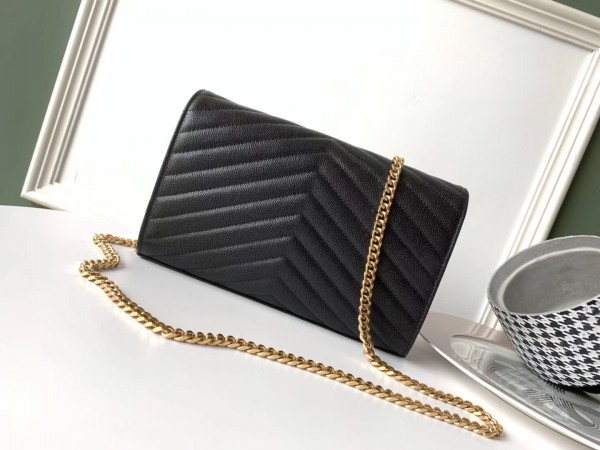 Saint Laurent WOC Monogram Chain Wallet In Black Leather