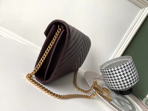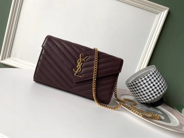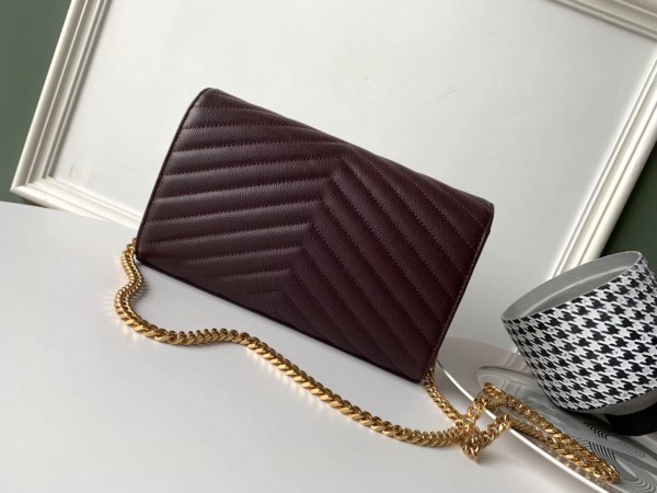 Saint Laurent WOC Monogram Chain Wallet In Bordeaux Leather