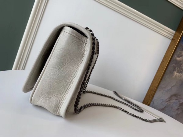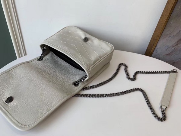 Saint Laurent WOC Niki Chain Wallet In White Crinkled Leather