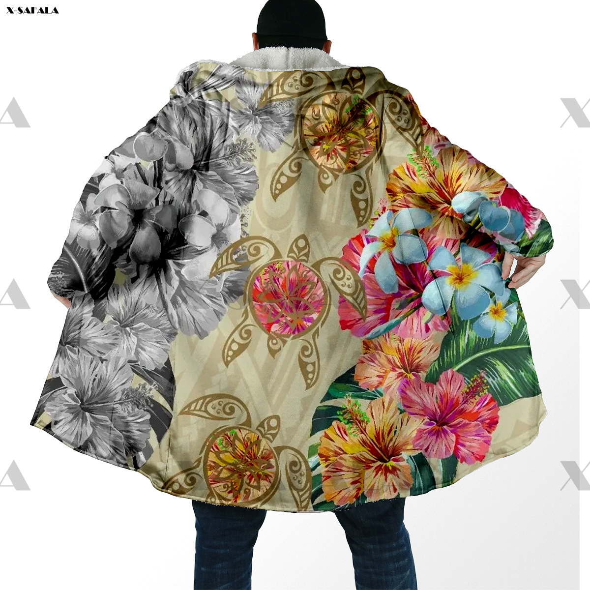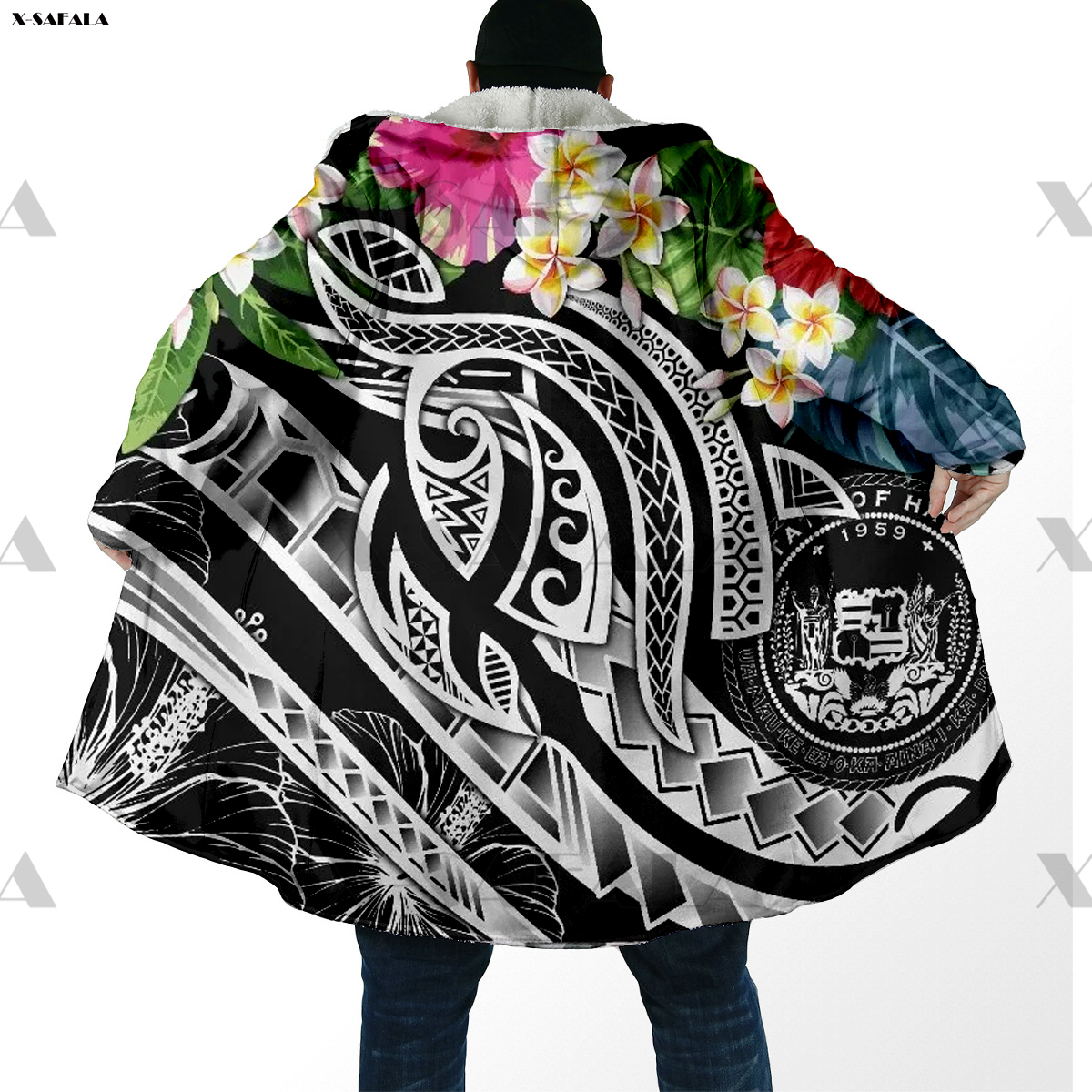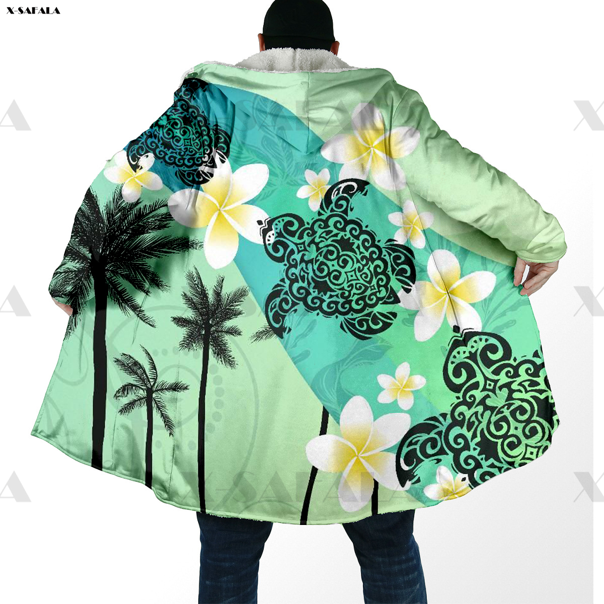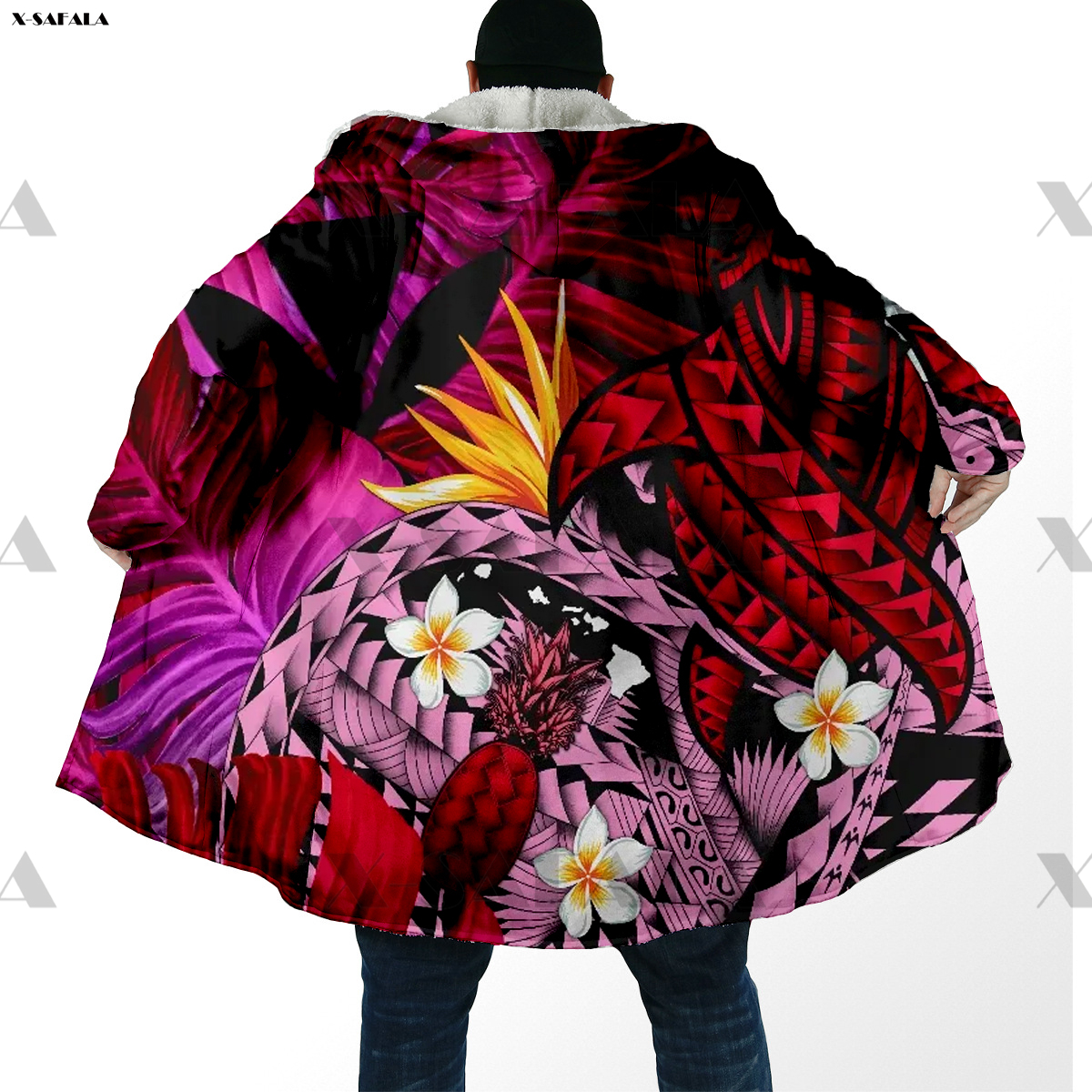 Samoa Polynesian Coconut 3D Printed Hoodie Long Coat Hooded Cloak Thick Down Jacket Outerwear Cotton Pullovers Dunnes