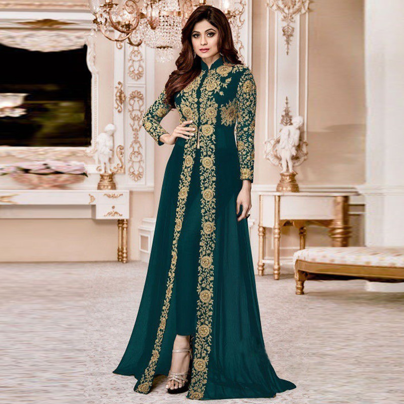 Saudi Arabia Muslim Long Skirt Retro Ethnic Print Noble Women's Suit Islamic Women's Dress Dubai Arab Emirates Long Skirt Pants