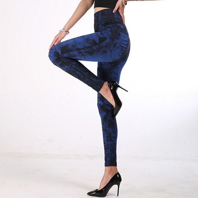 Sexy astic Imitation Jeans Leggings High Waist Pants Fitness Slim Legg Mujer Sport Push Up Leggings For Women