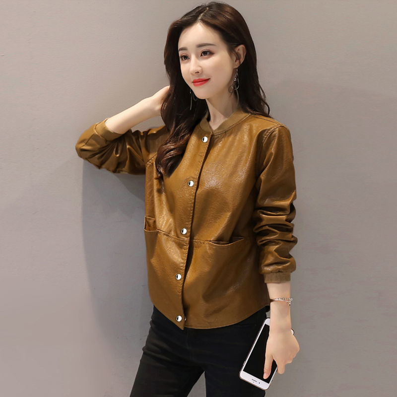 Short Leather Jacket Women's Spring Autumn Loose Large Casual Leather Lady PU Leather Jacket Coat