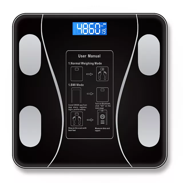 Feature: Measure multiple body data and master all body changes Intelligent sensing, which is called automatic power on and automatic power off R10 anti-collision rounded corners, anti-slip and anti-rollover Sensing indoor temperature, Bluetooth-compatible APP one click connection. Specification: Scale frame material: ABS plastic base Panel material: explosion-proof tempered glass Product size: 260*260*23mm/10.23*10.23*0.9in Display size: 58*23mm/2.3*0.9in Display mode: LCD HD blue screen display Supply method: battery type 2*AAA (not included) Weighing range: 0.2-180kg Display unit: kg/lb/st conversion Sensor: highly sensitive sensor Additional functions: temperature, power display, Bluetooth-compatible function Color: Black, White, Pink Note: Due to the different monitor and light effect, the actual color of the item might be slightly different from the color showed on the pictures. Thank you! Please allow 1-2cm measuring deviation due to manual measurement.